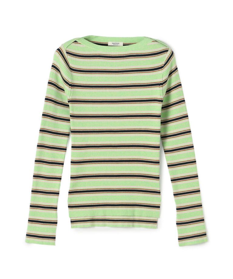 コットンリブ ボートネックプルオーバー ( ライトグリーン系) コットン / 袖口スリット / フィット感有り / 手洗可 / 伸縮性有り / 12-02-61-02108