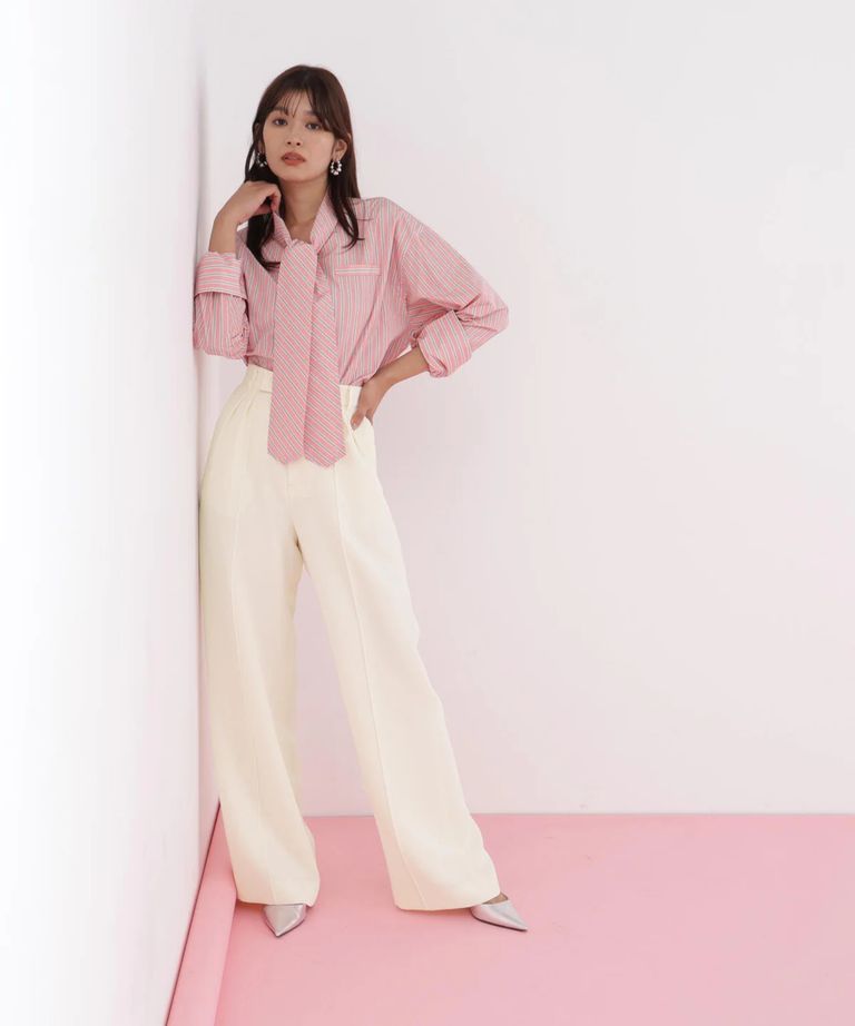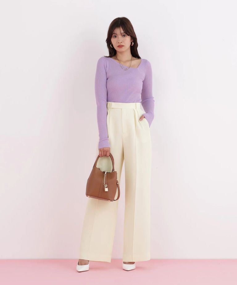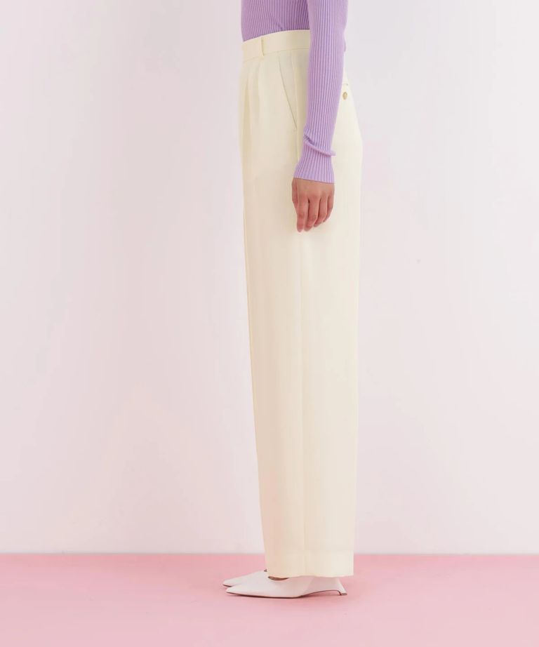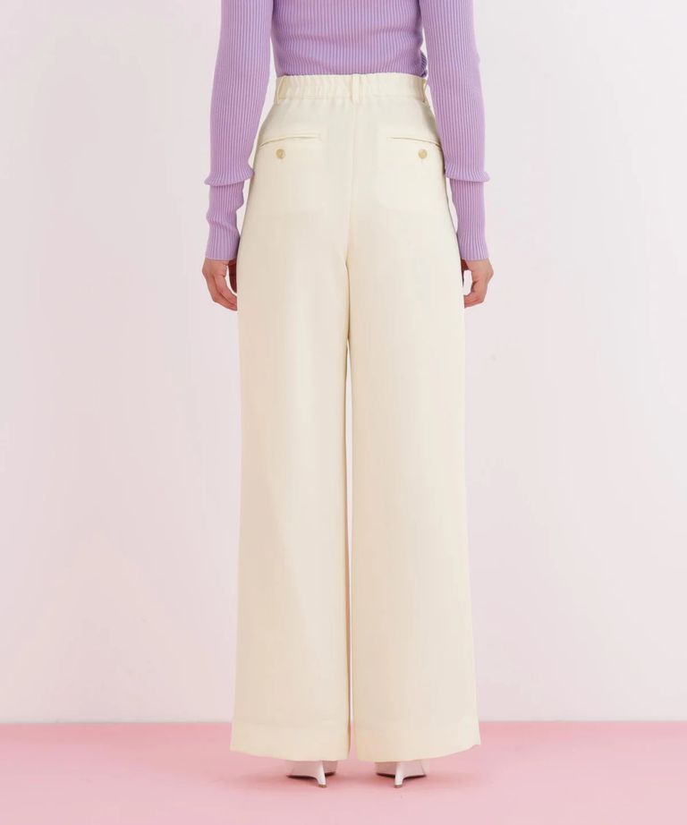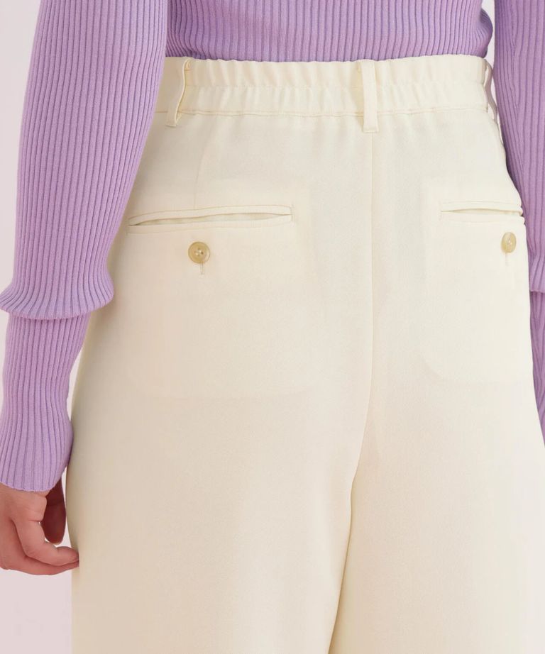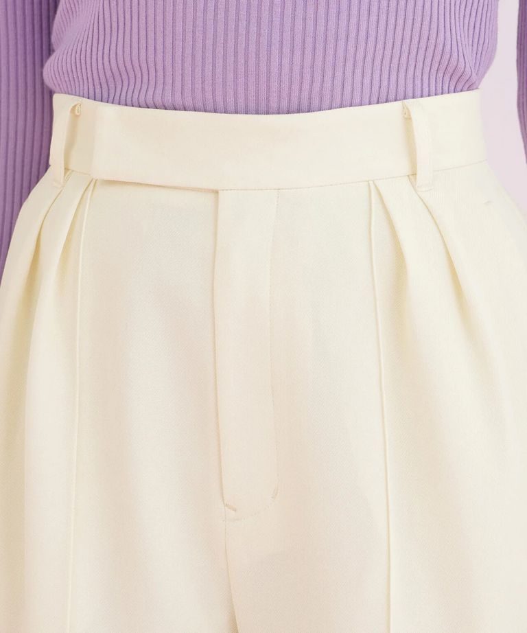 センターシームパンツ(エクリュ)ポリエステル/ ウエストゴム / 脚長効果 / ハイウエスト / ストレッチなし / 前ファスナーあき / 0316130104