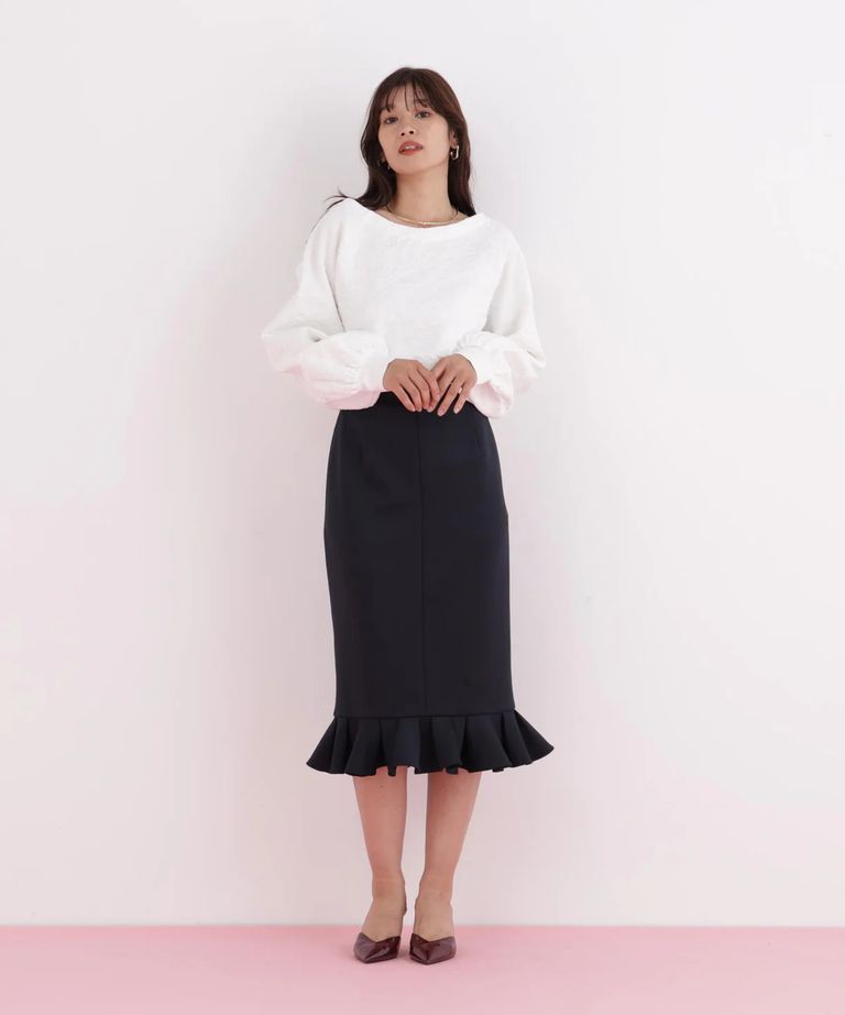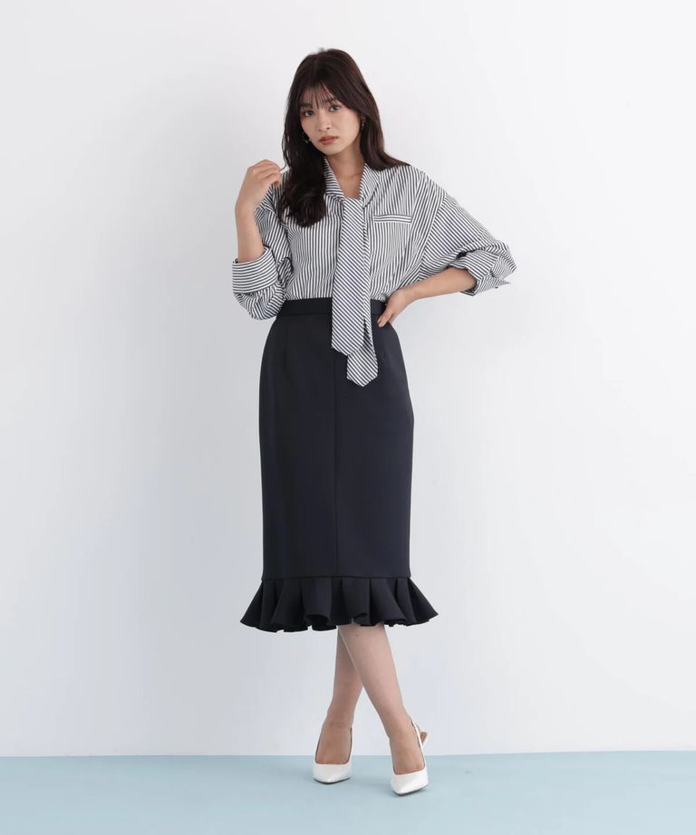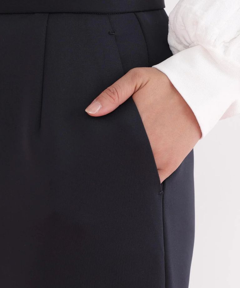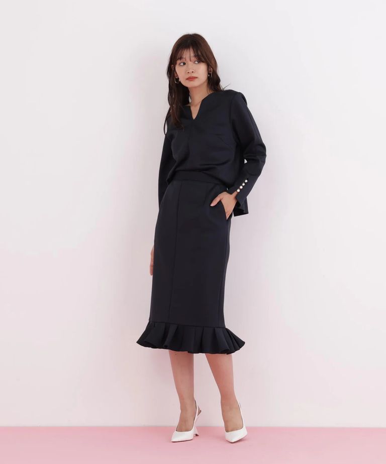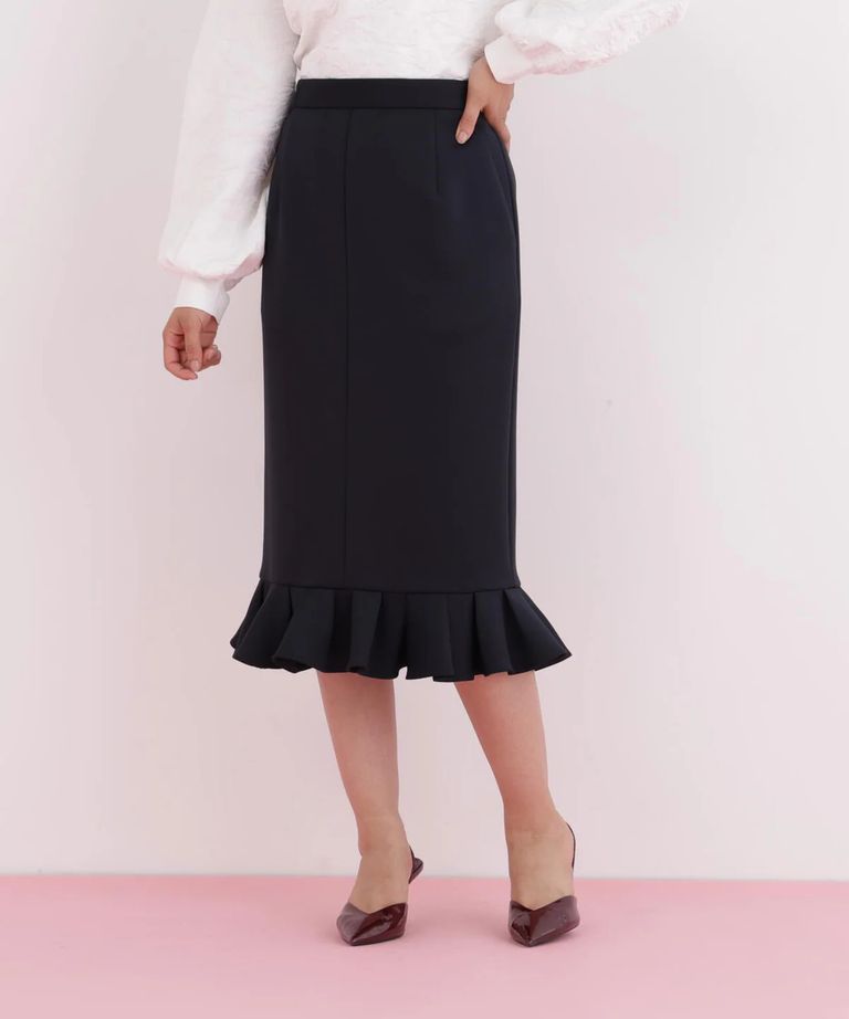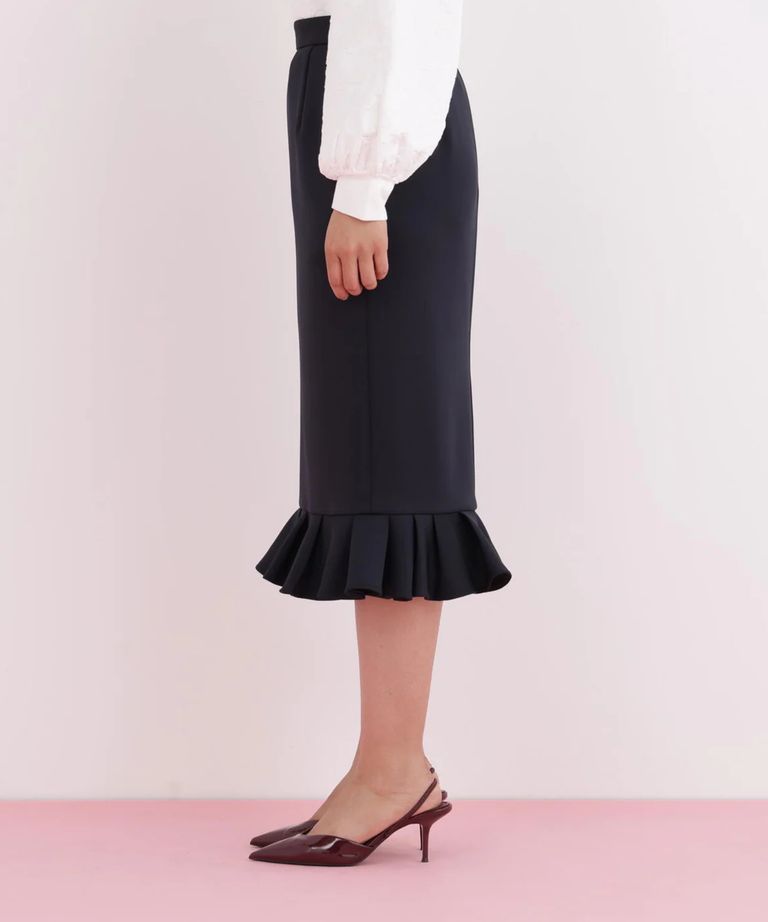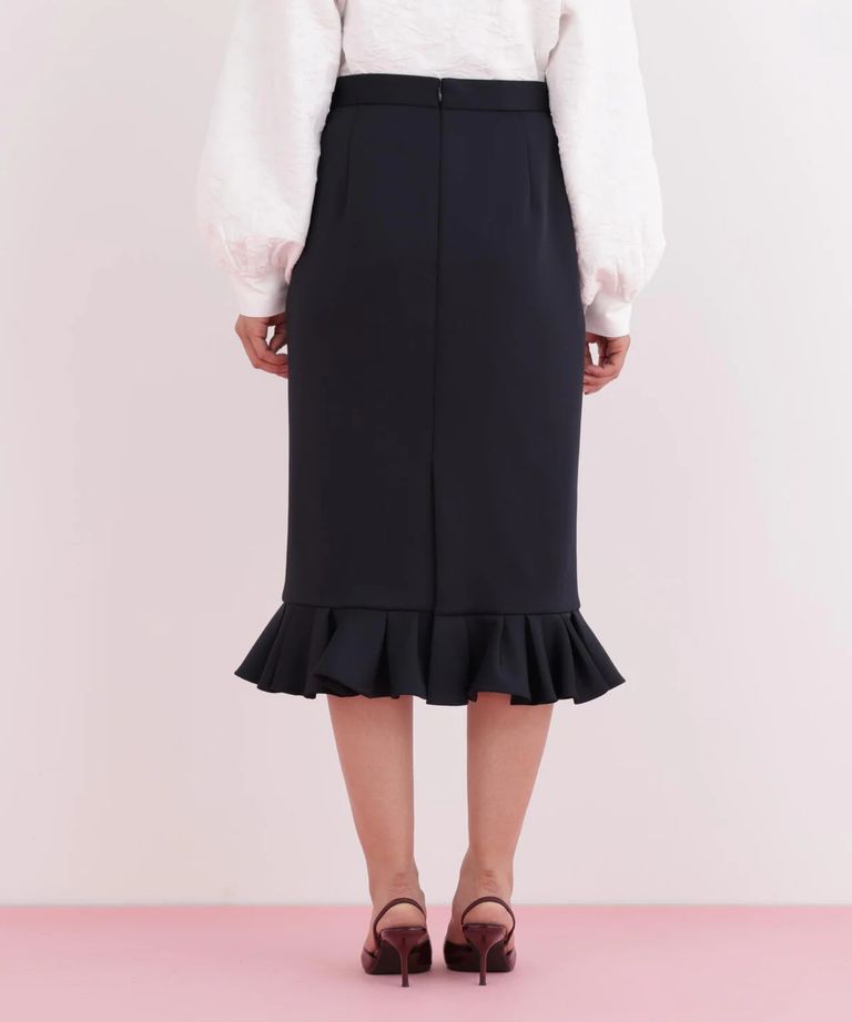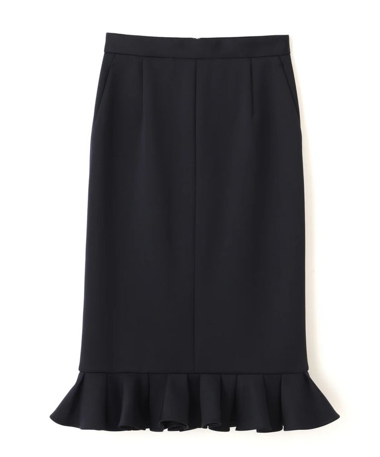 ラッフルヘムジャージスカート(ネイビー)ポリエステル / ストレッチあり / 裏地付き / 前ポケット×2 / 後ろファスナーあき / 後にベンツあり / 0316120116