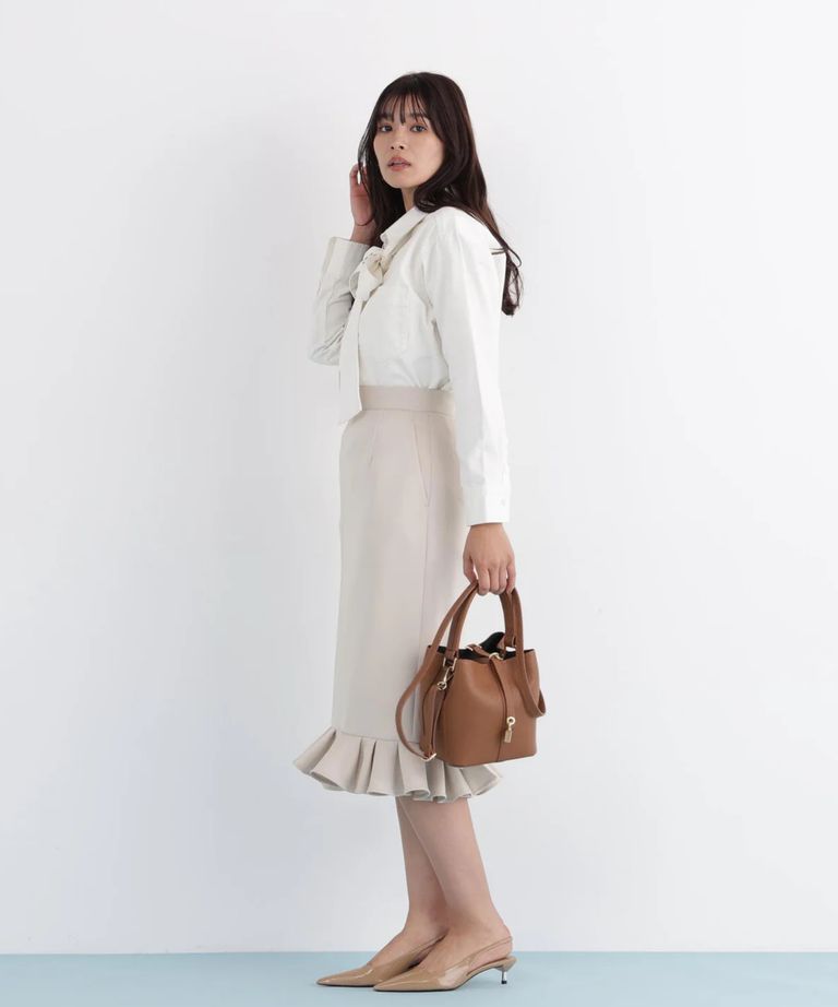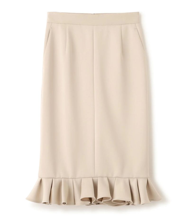 ラッフルヘムジャージスカート(ベージュ)ポリエステル / ストレッチあり / 裏地付き / 前ポケット×2 / 後ろファスナーあき / 後にベンツあり / 0316120116