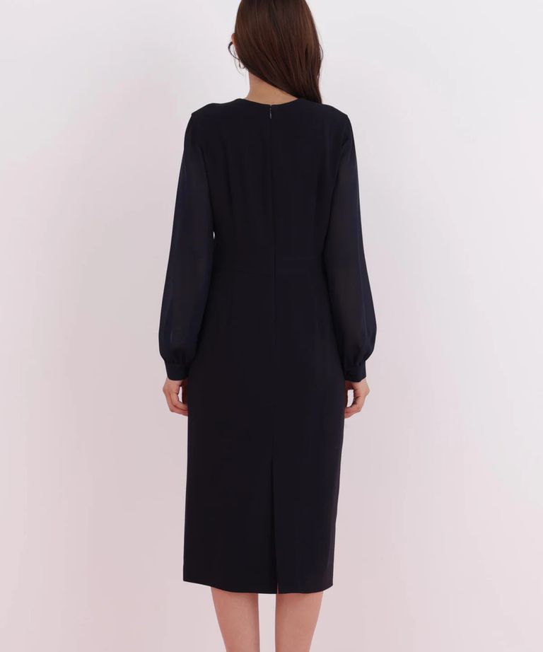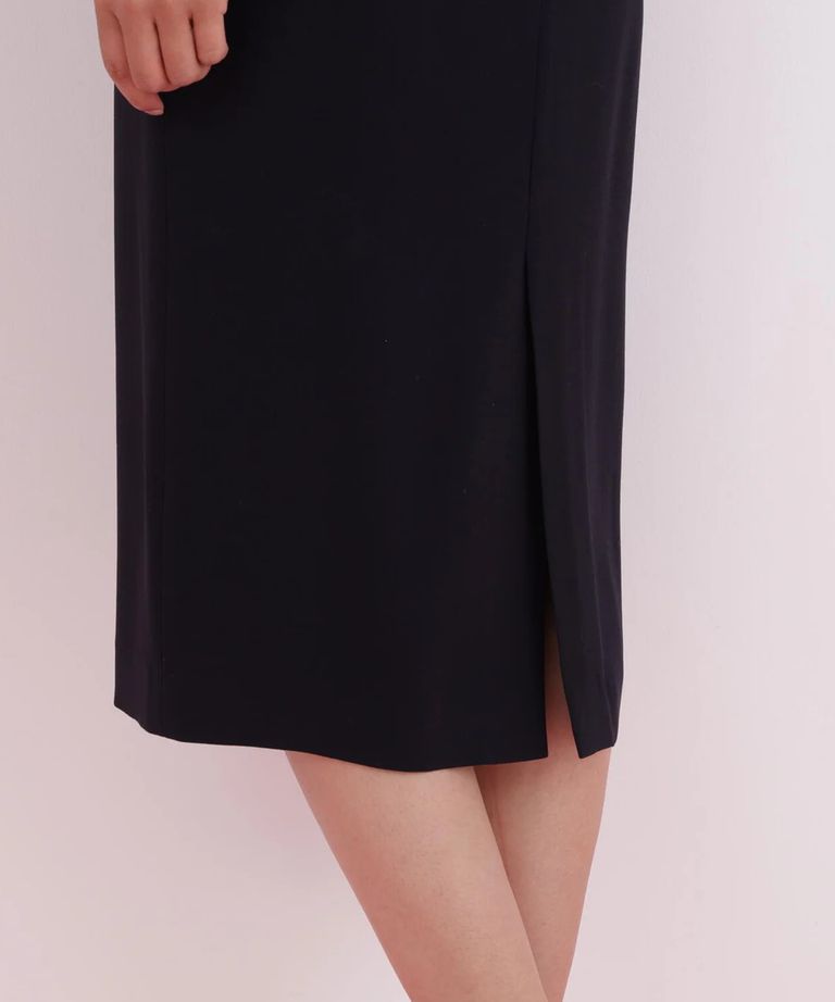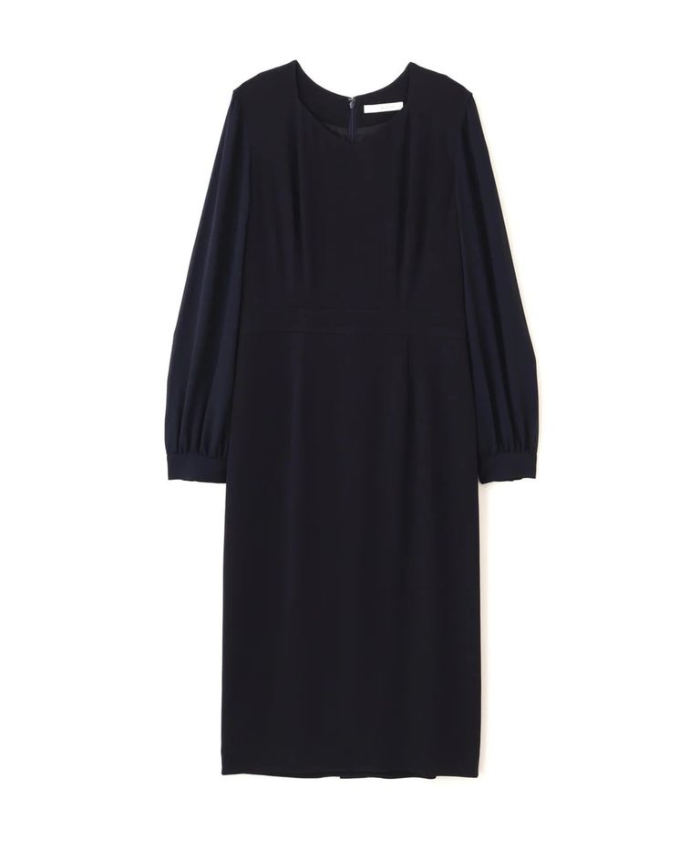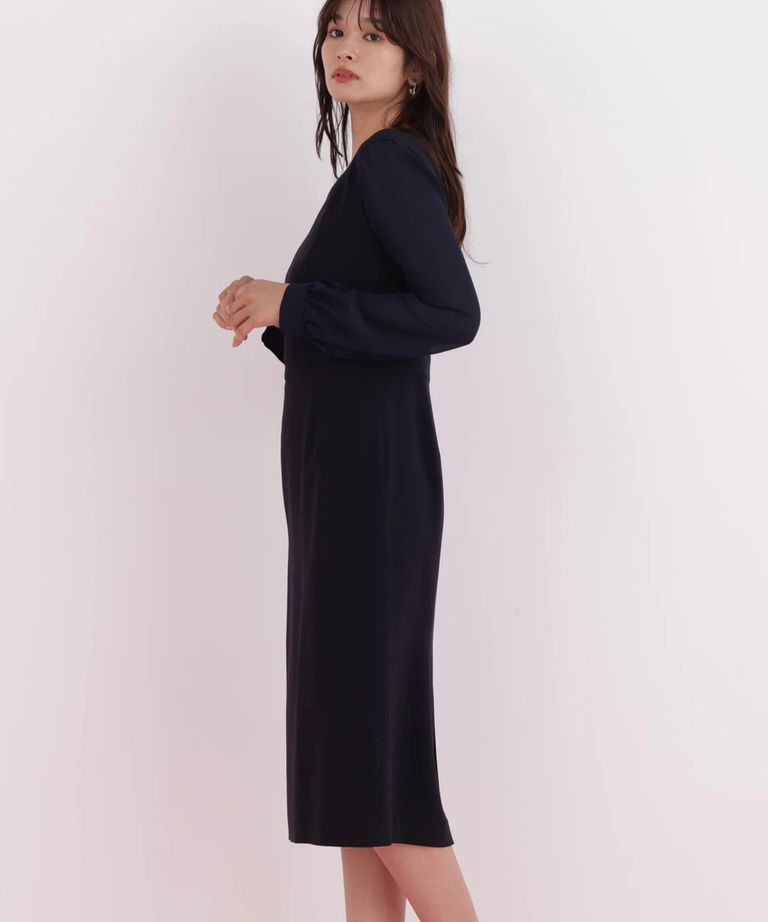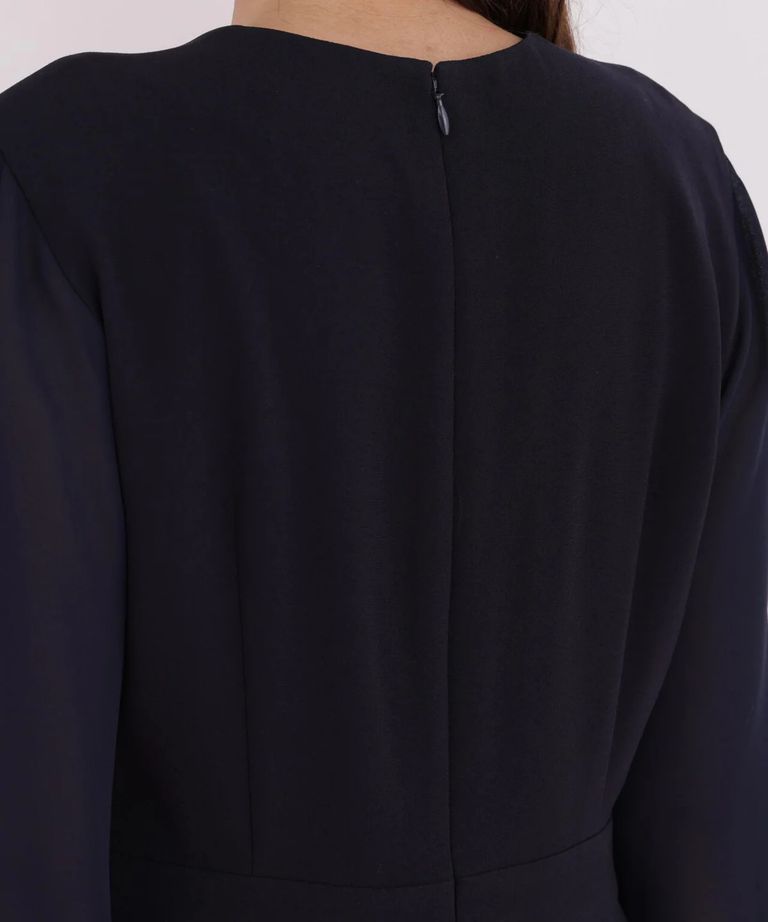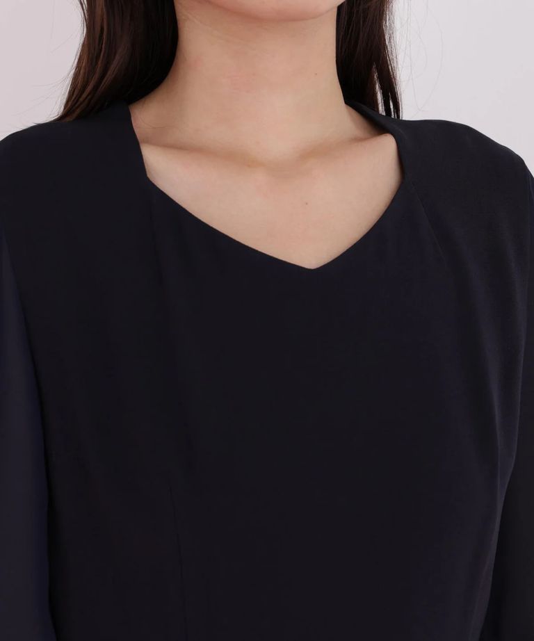 ダイヤモンドネックコンビワンピース(ネイビー)アセテート / ストレッチなし / 身頃裏付き / 後ファスナー / 後ろベンツあり / 膝が隠れる丈 / 0316140112