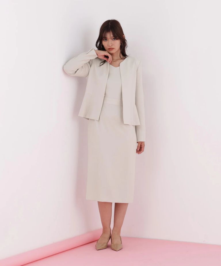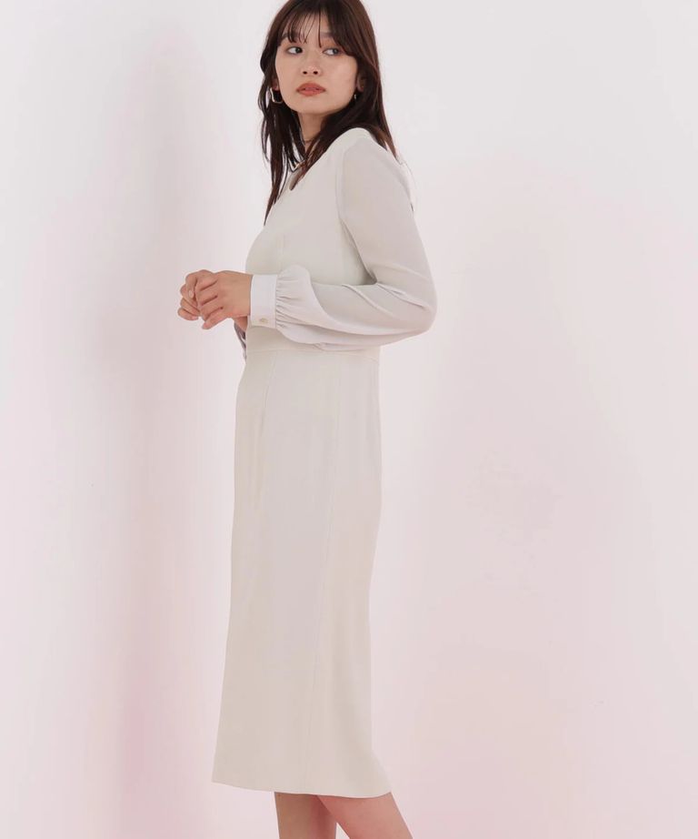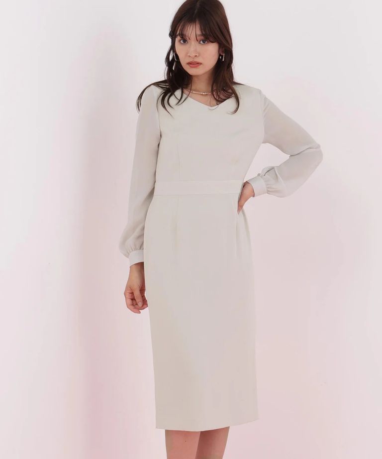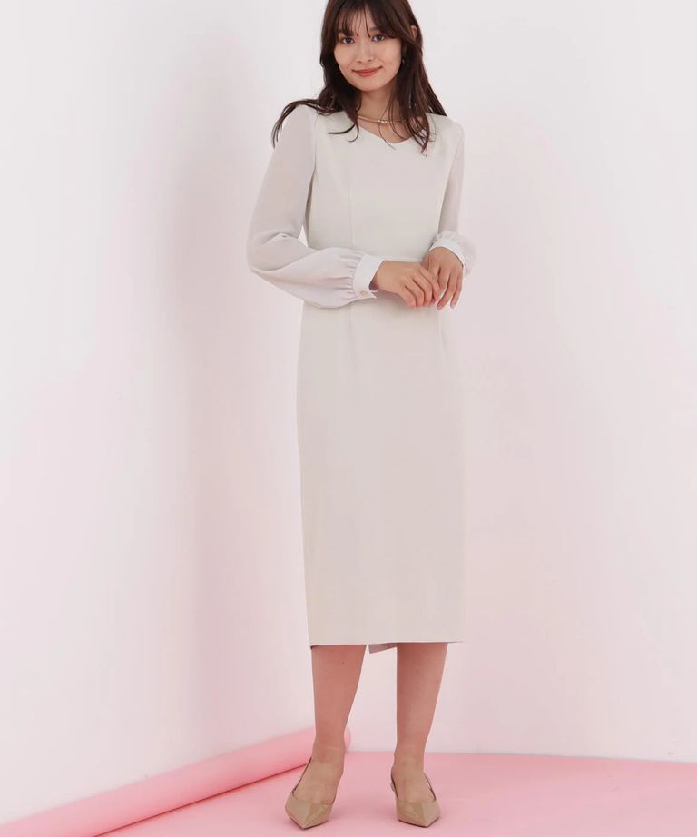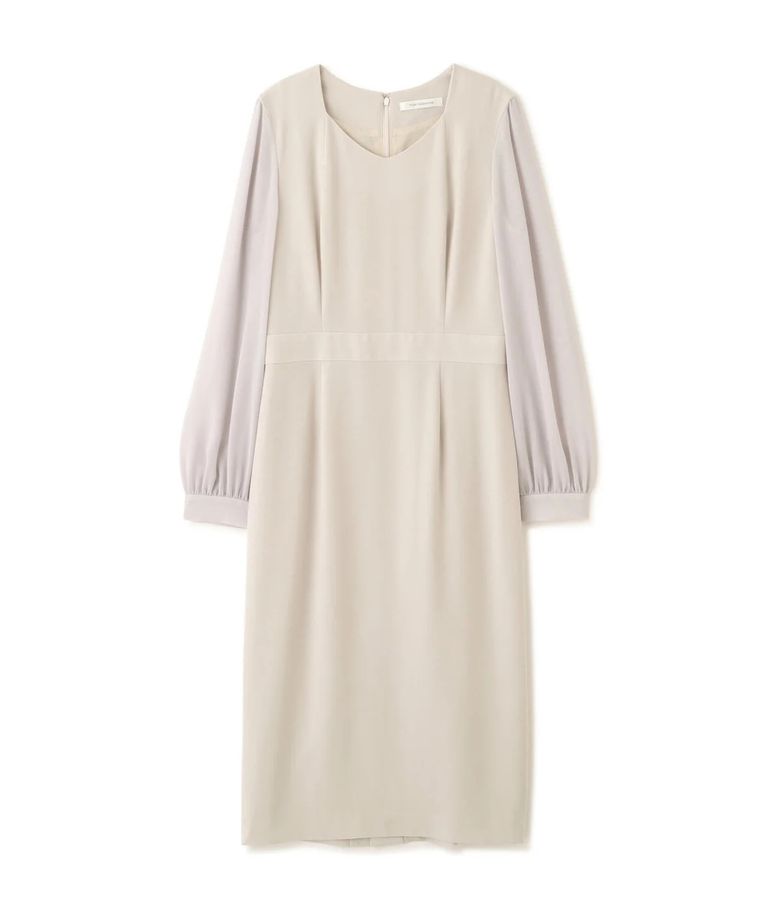 ダイヤモンドネックコンビワンピース(ベージュ)アセテート / ストレッチなし / 身頃裏付き / 後ファスナー / 後ろベンツあり / 膝が隠れる丈 / 0316140112