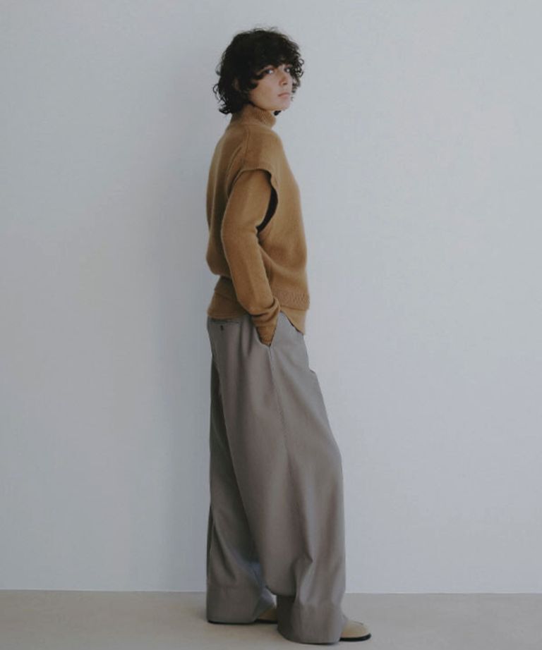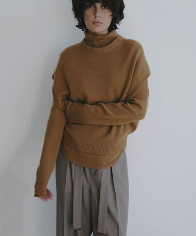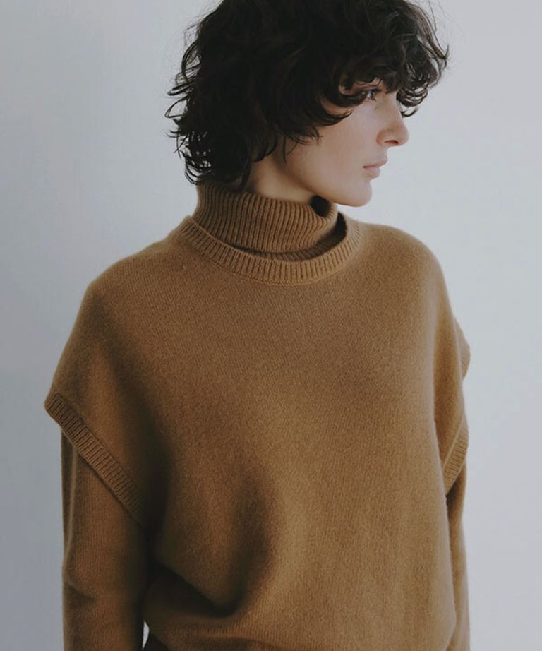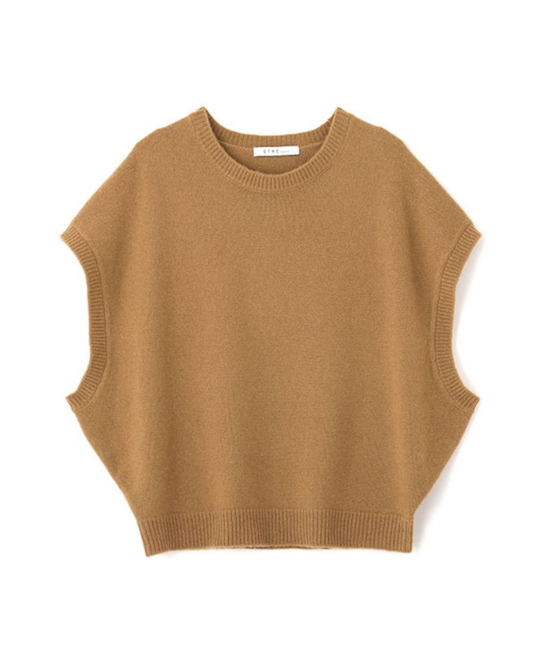 ウールカシミヤスリーブレスニットプルオーバー (CAMEL) 毛 / クルーネック / 柔らかい / 手洗可 / 1226111009