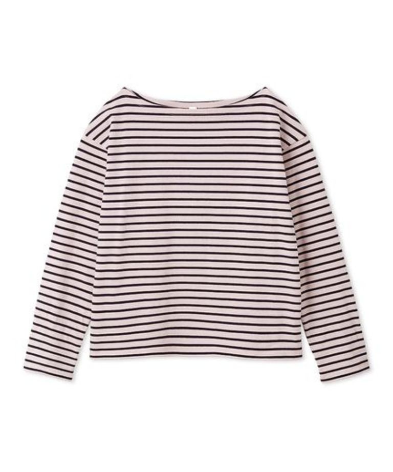 ボートネックボーダーTシャツ ( PNK ) 綿 / オリジナル刺繍 / ロングスリーブ / 透け感無し / 洗濯可 / 09WCT261119