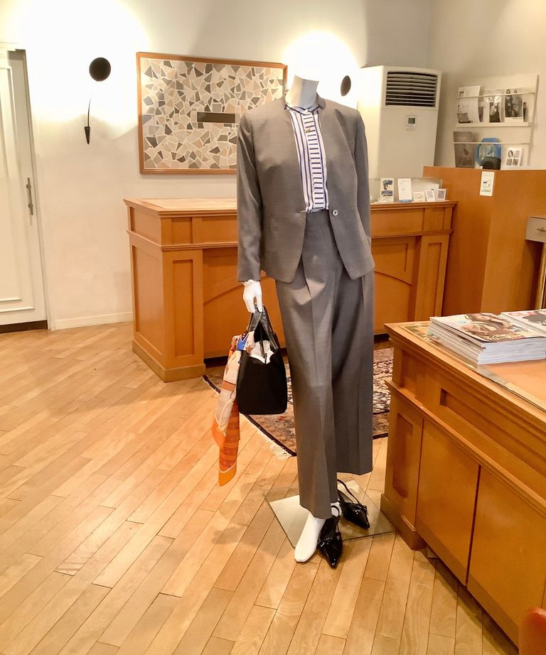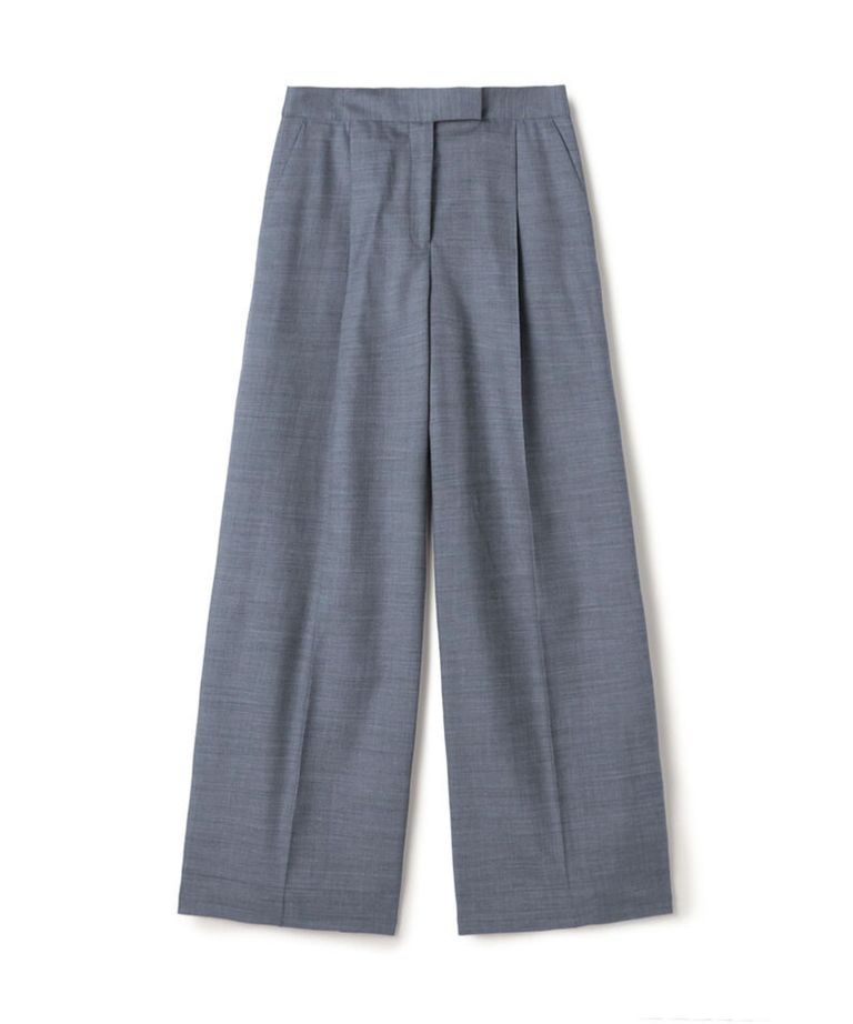 シャイニーシャーク センタープレスワイドパンツ (ブルーグレー ) ウール / ハイウエスト / 裏地有り / ストレッチ / 13-04-42-04354