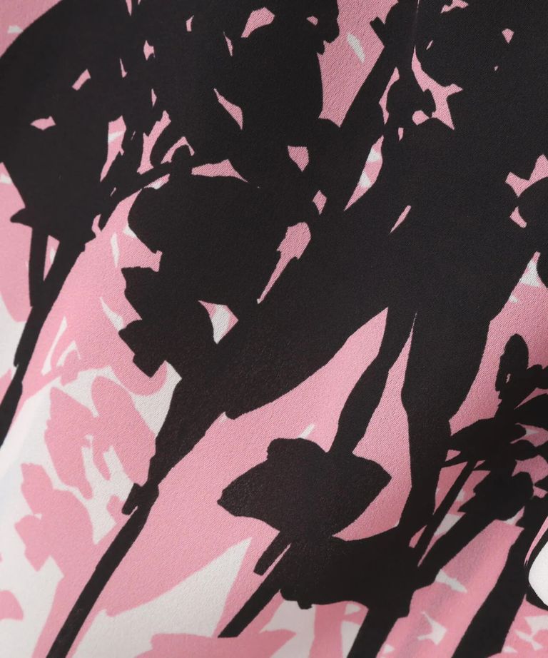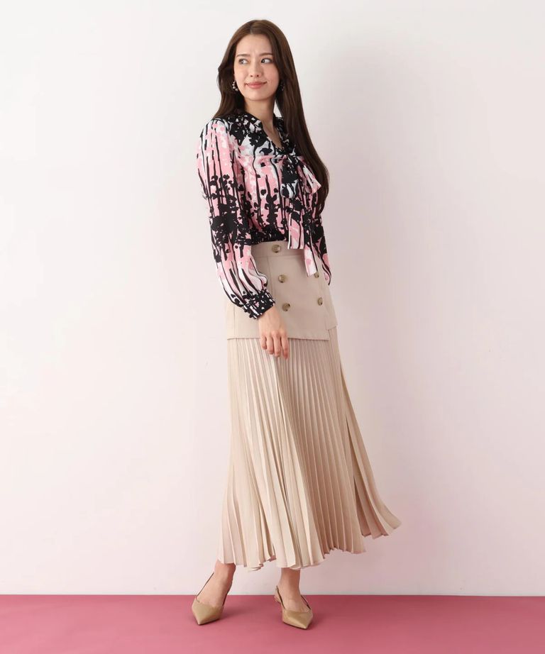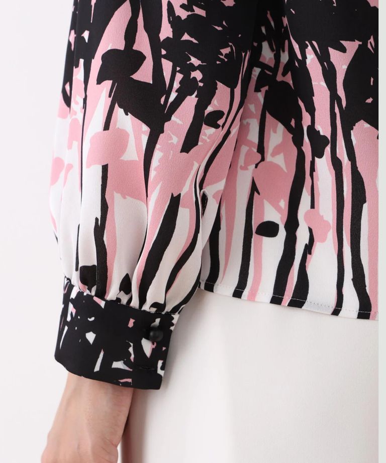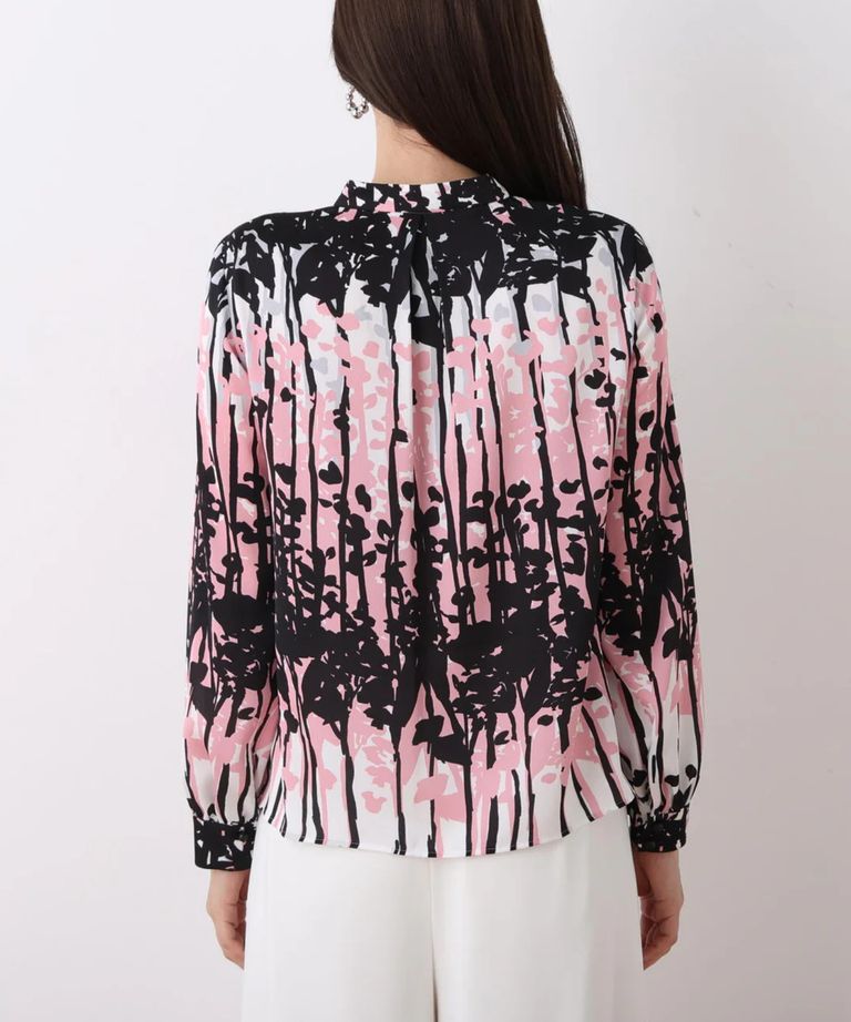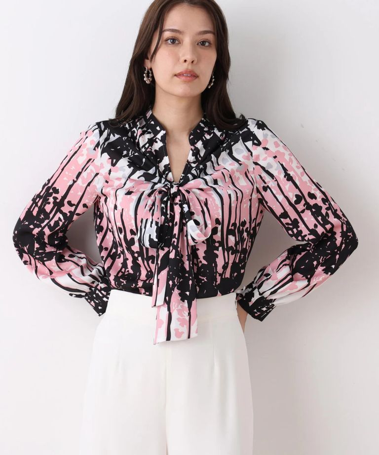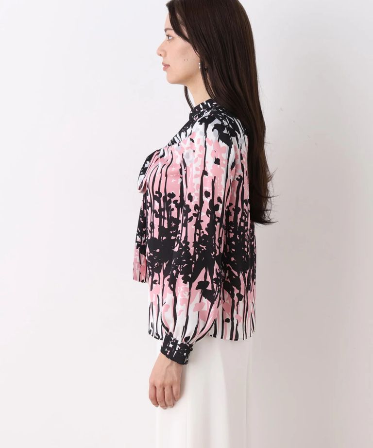 インクフォレストプリントリボンブラウス(ピンク系)ポリエステル / ウォッシャブル / 手洗い可 / ストレッチなし / 裏地なし / かぶって着用 / 0316110200
