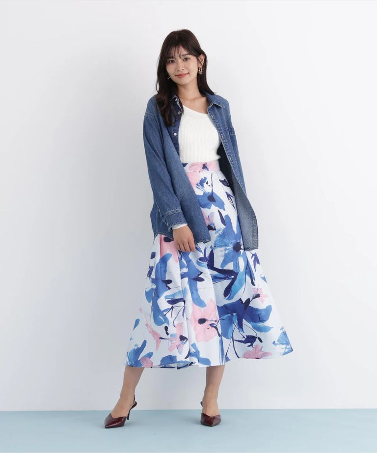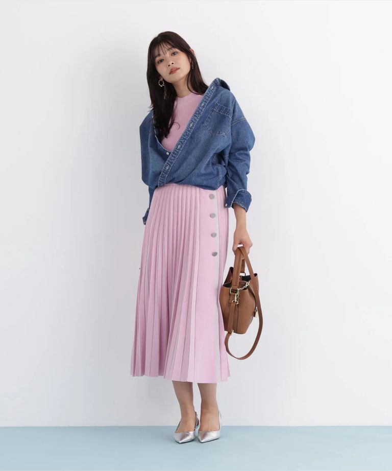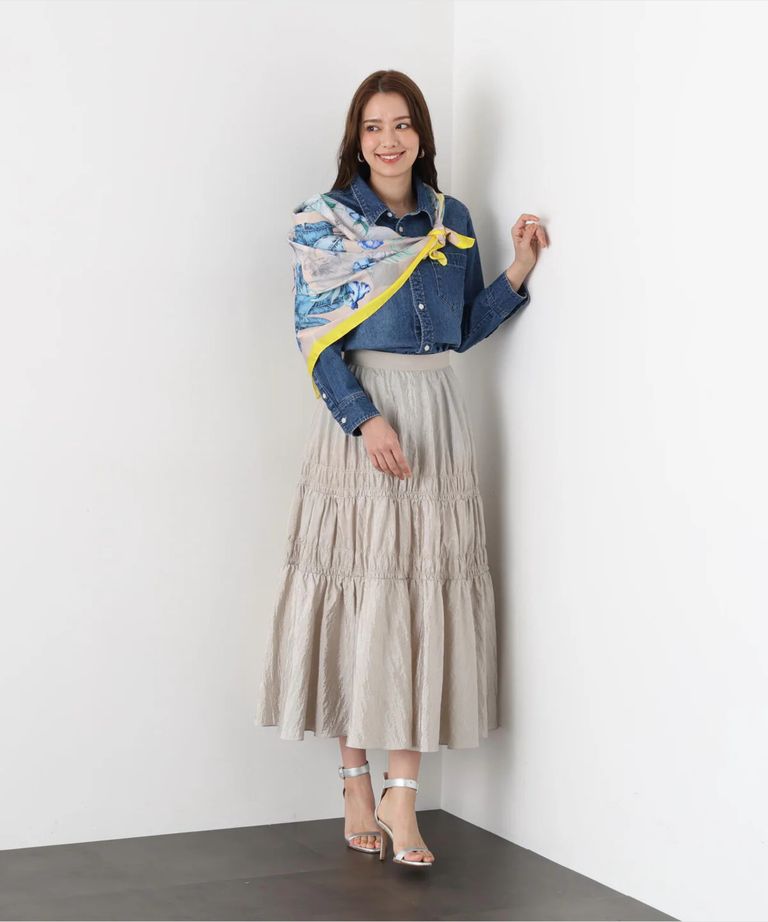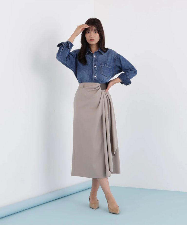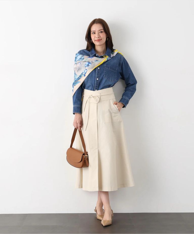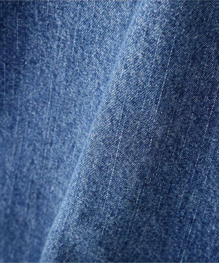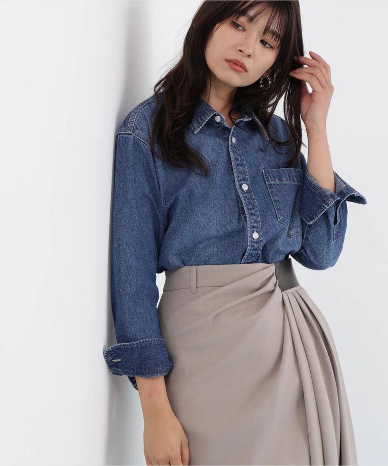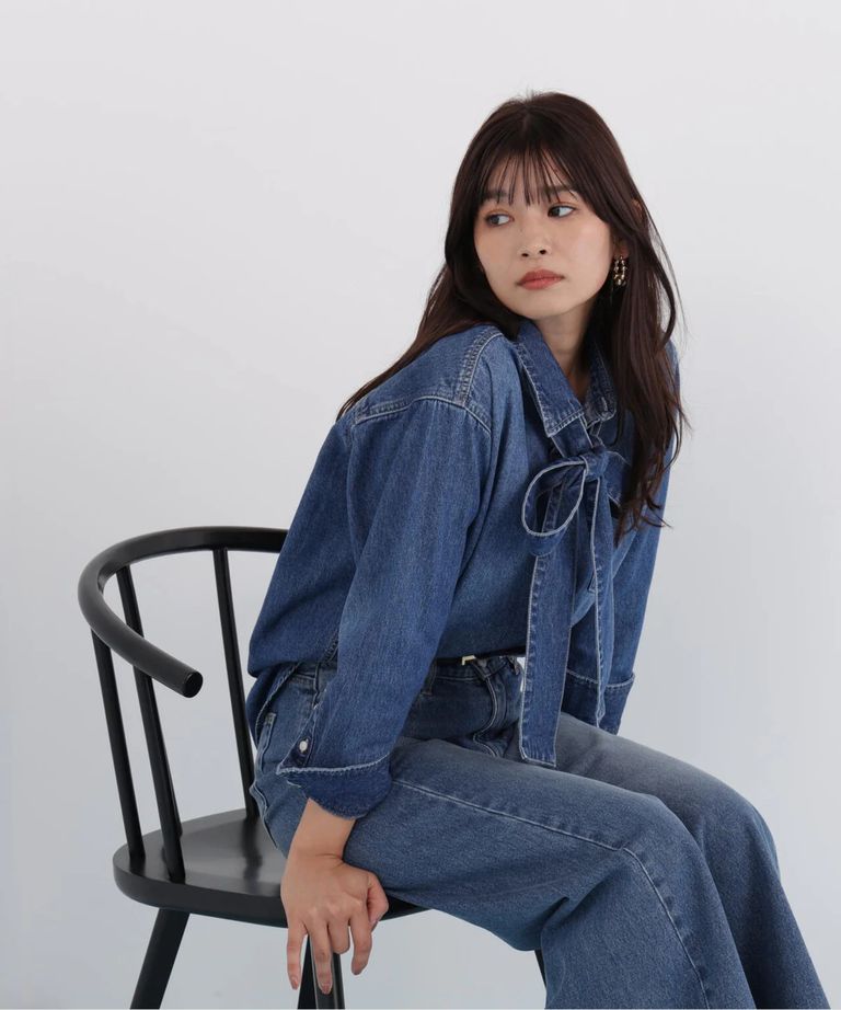 ネックリボンデニムシャツ(インディゴ)コットン100% / ストレッチなし / ボタンあき / 取り外しボウタイ付き / 胸ポケット×1 / 0316110108