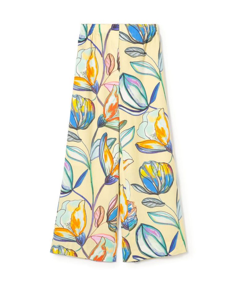 ボタニコプリント セミワイドパンツ (ライトベージュ系 ) レーヨン / 裏地膝下まで / やや薄手 / 手洗可 /11-04-62-04102