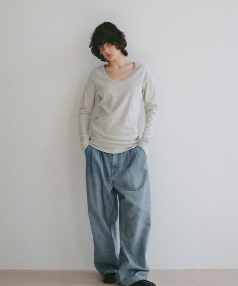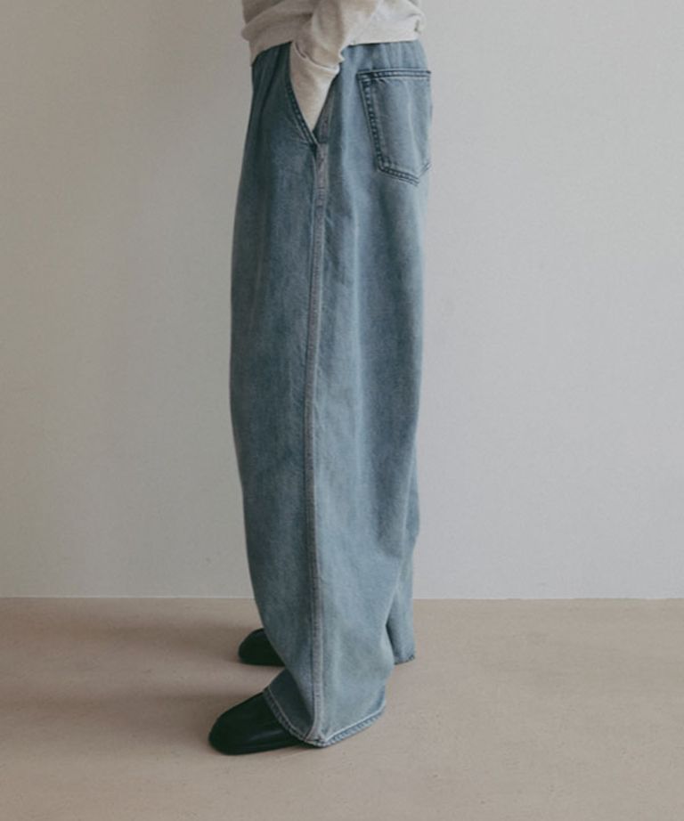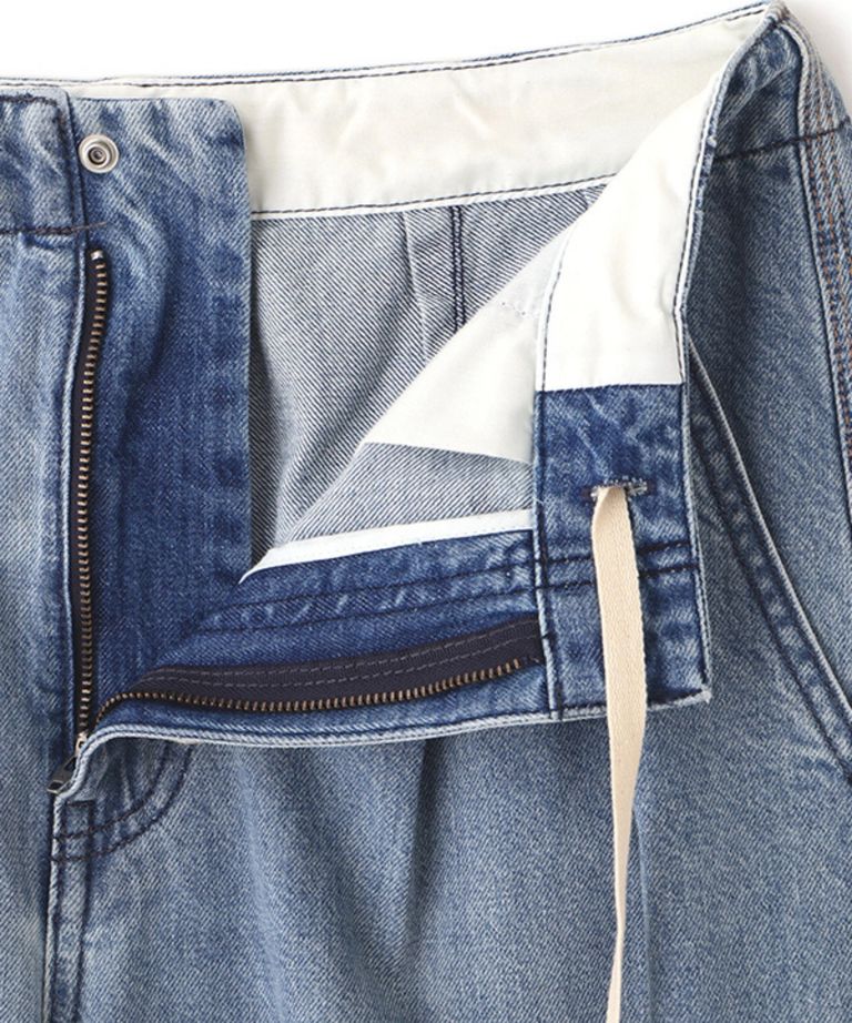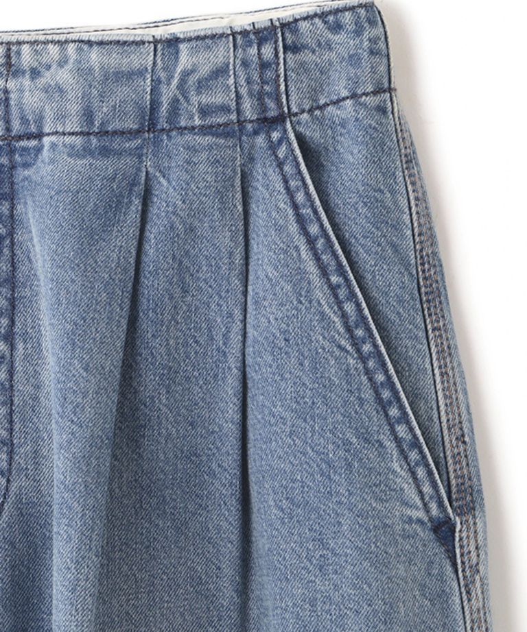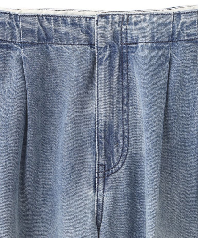 デニムタックワイドパンツ (BLUE) 綿 / ライトオンス / フロントタッ ク / 手洗可 / 1226122056