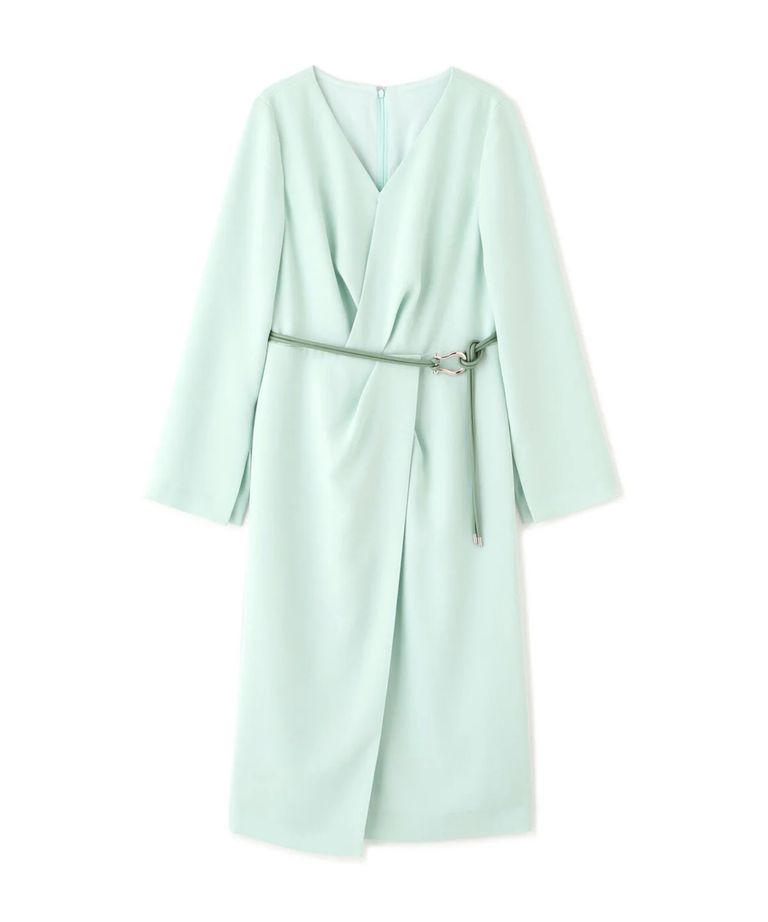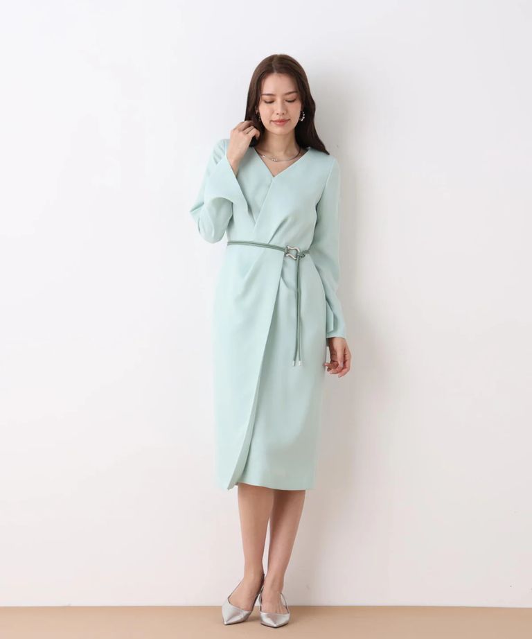 タッククロスウエストワンピース(ミントグリーン) ポリエステル / ストレッチあり / 裏地付き(袖は裏無し) / 右脇奥にスリットあり / 後ろファスナー開き / 袖下にスリットあり / 0316140219