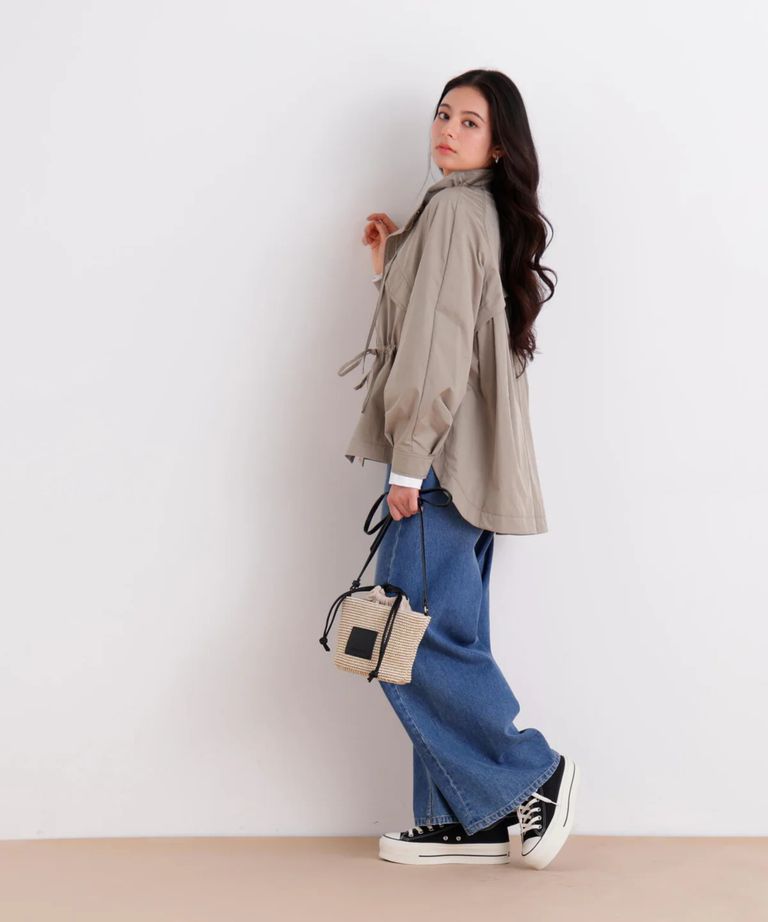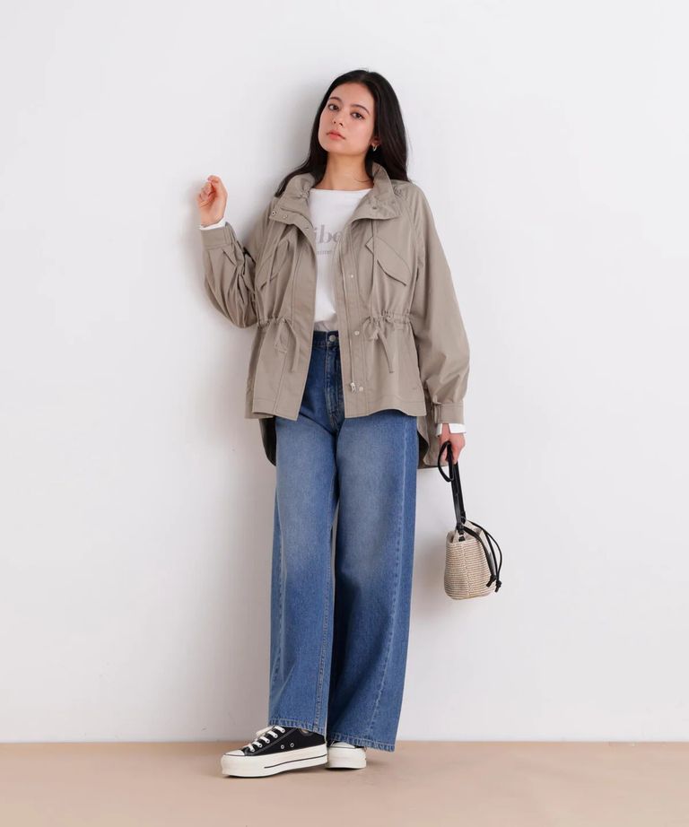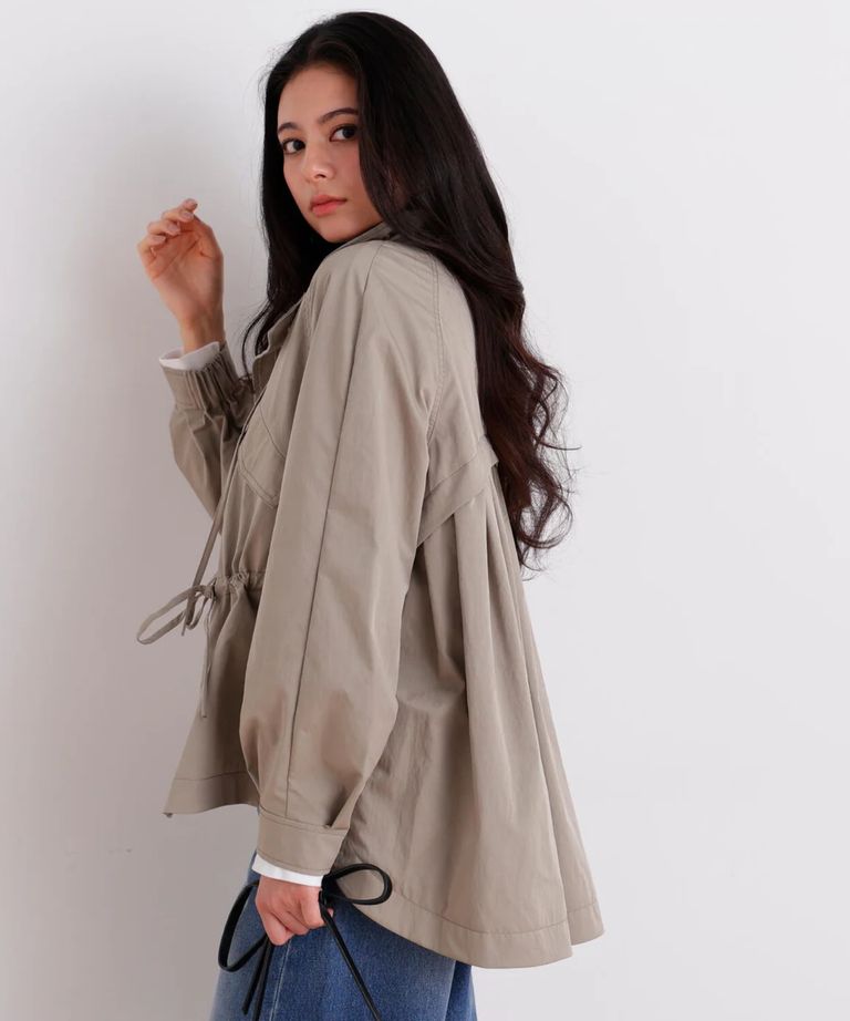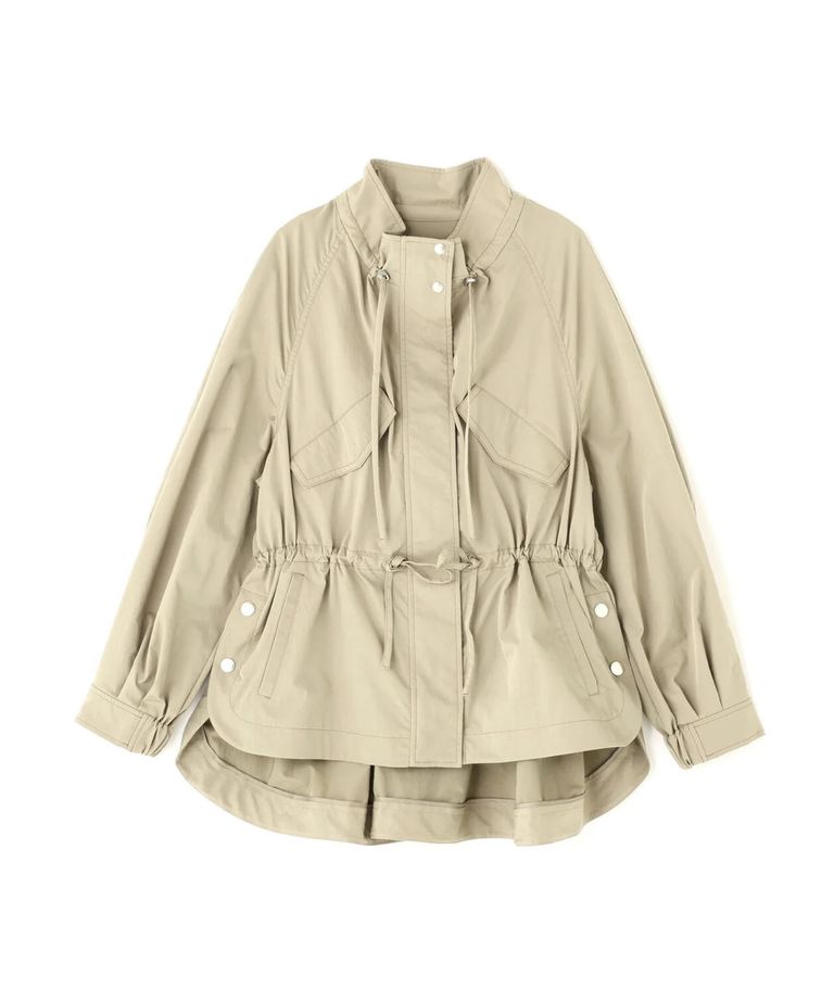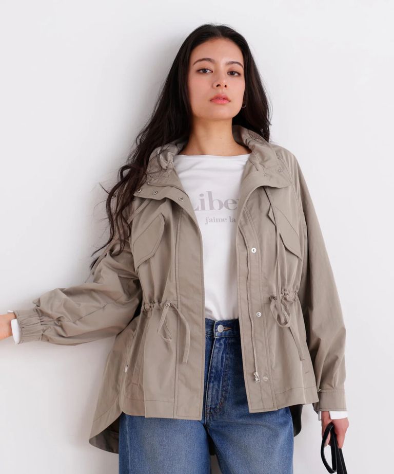 ストレッチツイルマウンテンパーカー(カーキ)ポリエステル / ストレッチあり / 裏無し / 両脇ベンツあき / 前ファスナー開き+ドットボタン / 0316155217