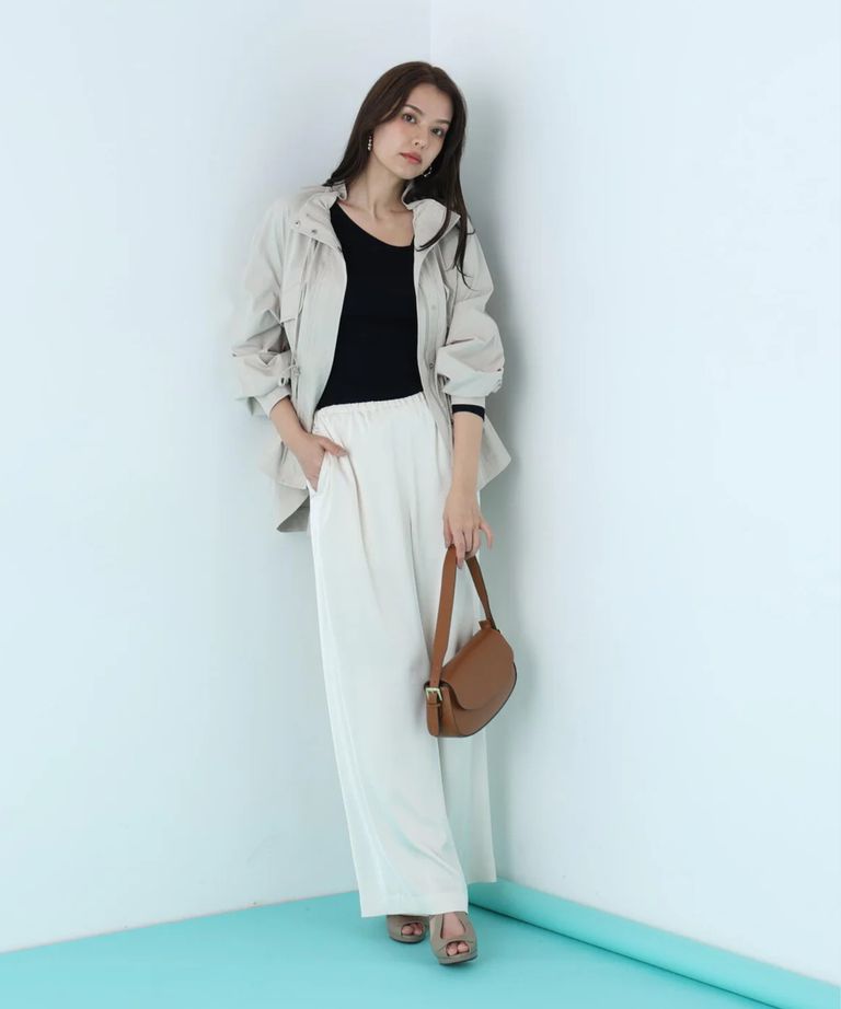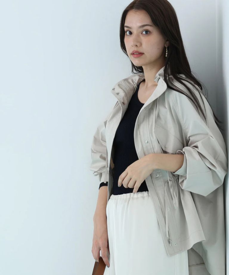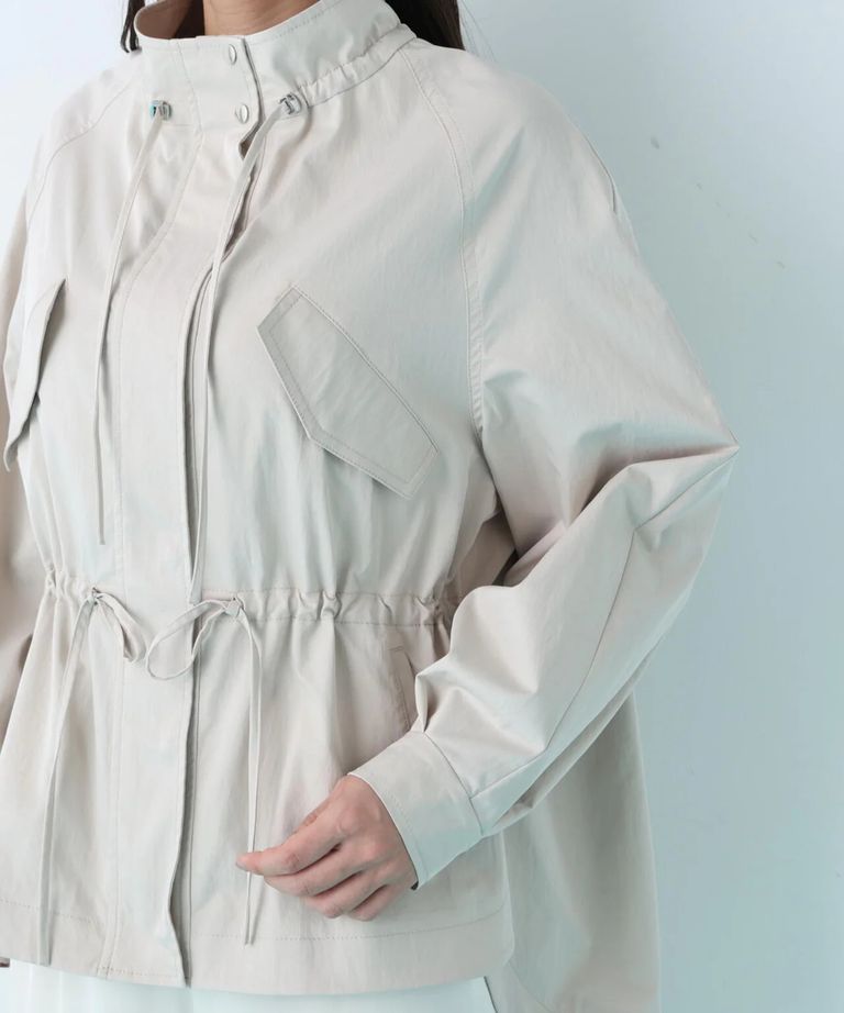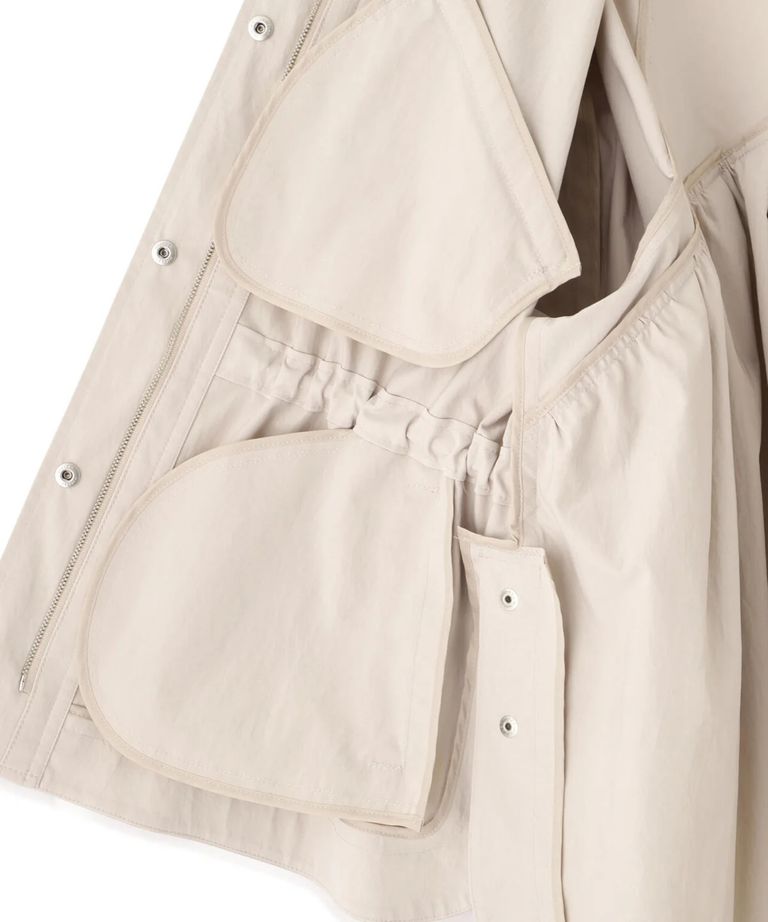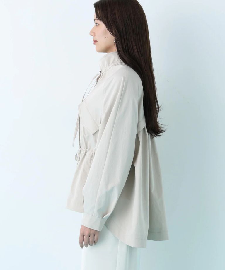 ストレッチツイルマウンテンパーカー(ベージュ)ポリエステル / ストレッチあり / 裏無し / 両脇ベンツあき / 前ファスナー開き+ドットボタン / 0316155217