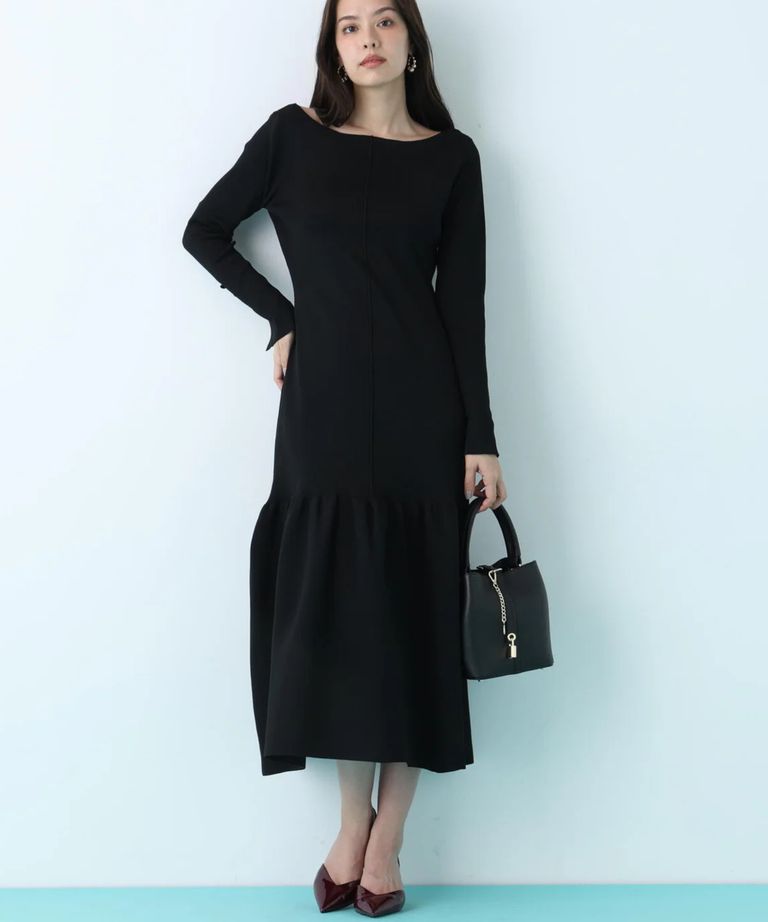 ボートネックマーメイドニットワンピース(ブラック)ポリエステル / ストレッチあり / 裏地無し / 袖口スリットあり / 0316147219