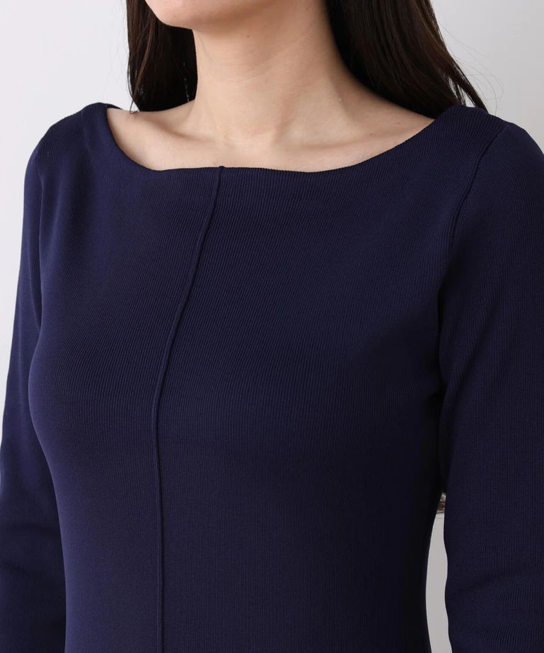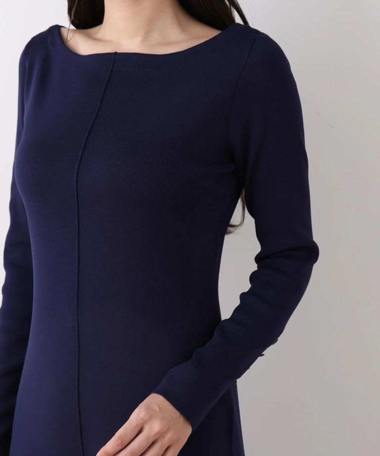 ボートネックマーメイドニットワンピース(ネイビー)ポリエステル / ストレッチあり / 裏地無し / 袖口スリットあり / 0316147219