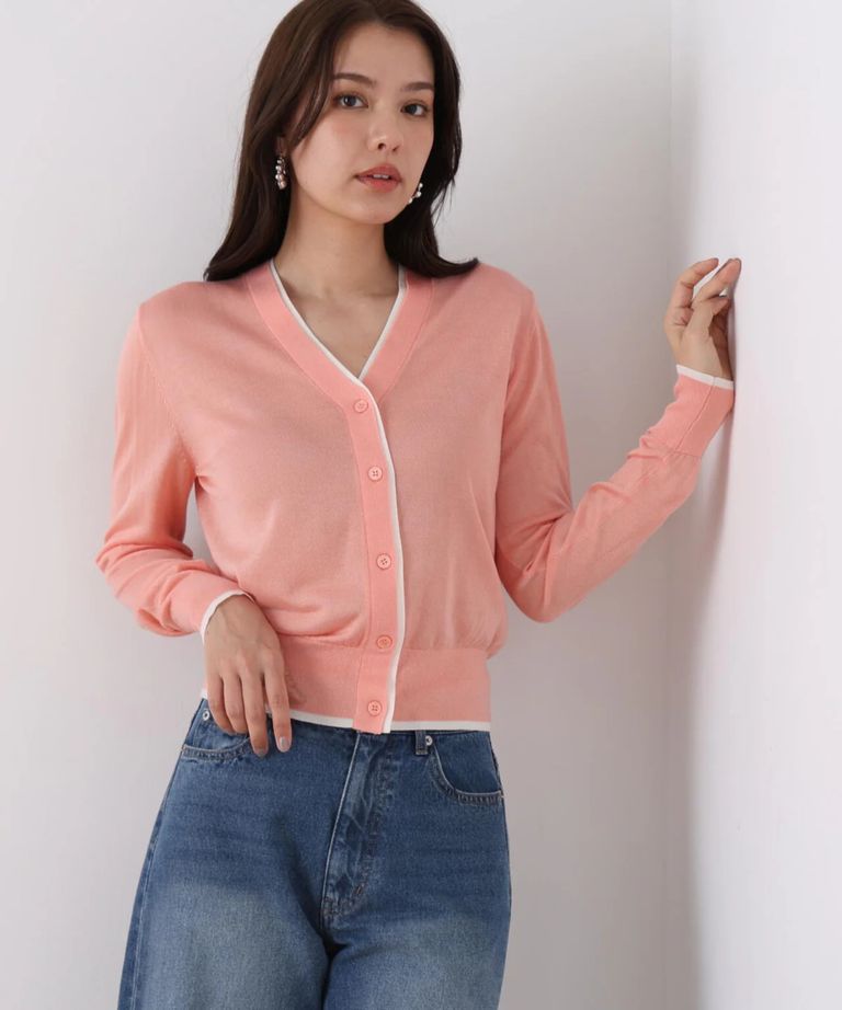 Vネックパレットニットカーディガン(ピンク)再生繊維 / ウォッシャブル / 手洗い可 / ストレッチあり / 前釦開き / 裏地無し / 0316175211