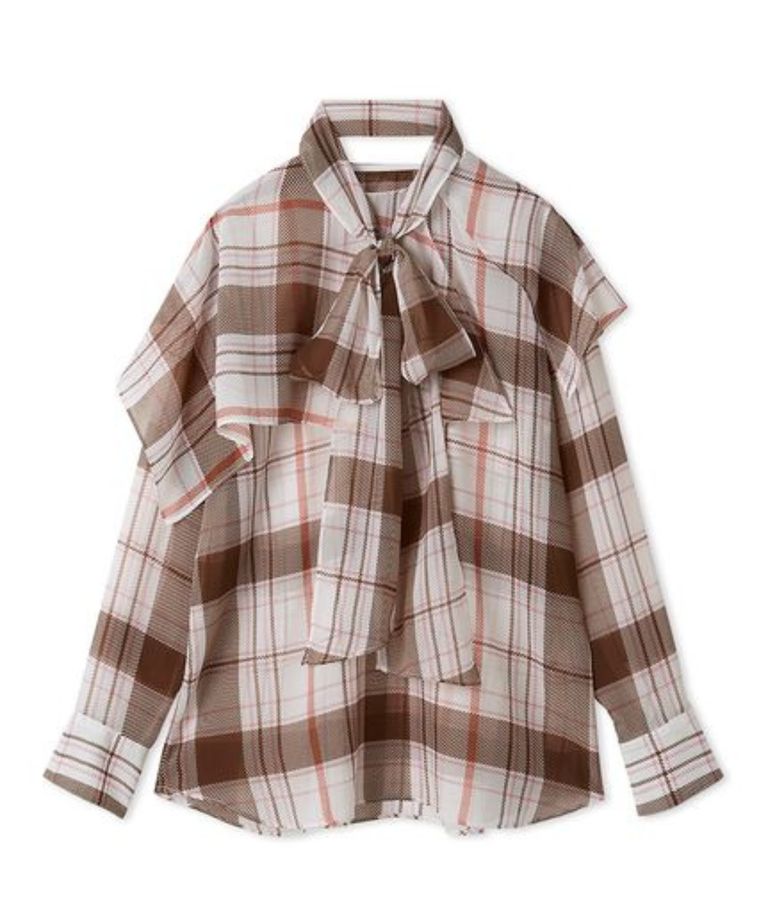 チェックボウタイブラウス (PNK) ポリエステル /ボウタイ取外し可能 / シアー / 柔らかい / 09WFB261109