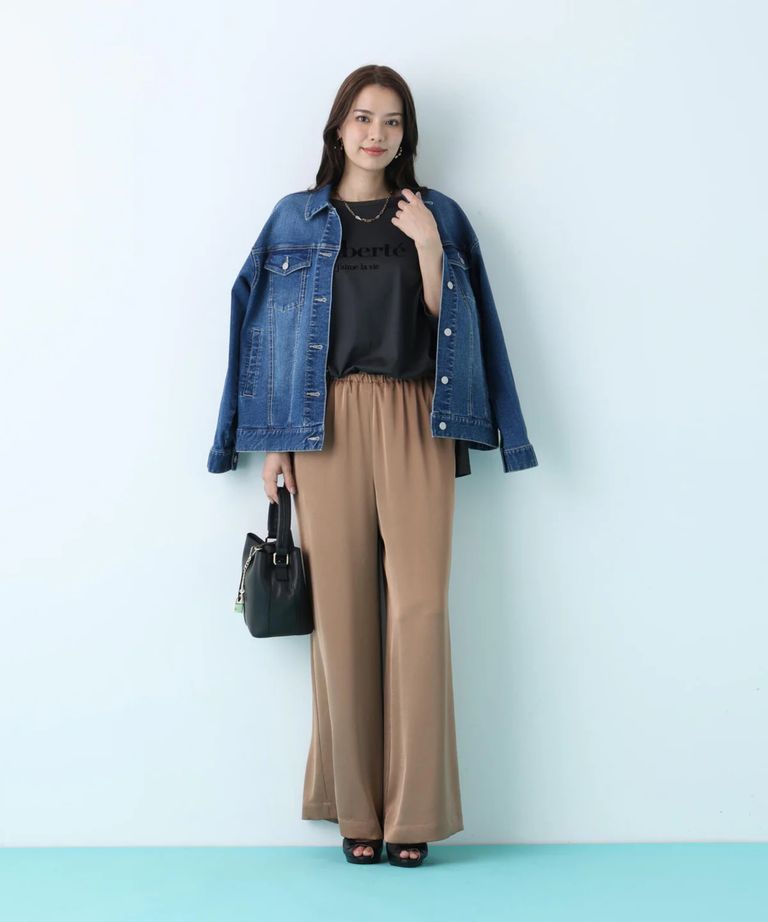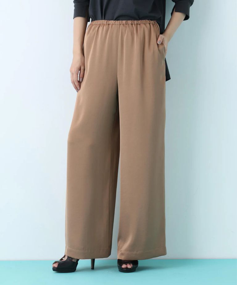 サテンワイドパンツ(キャメル)ポリエステル / ストレッチ性あり / ショート丈裏地付き / 前ポケット×2 、後ろ飾りポケット×2 / ウエストゴム +共ヒモ / 0316130223