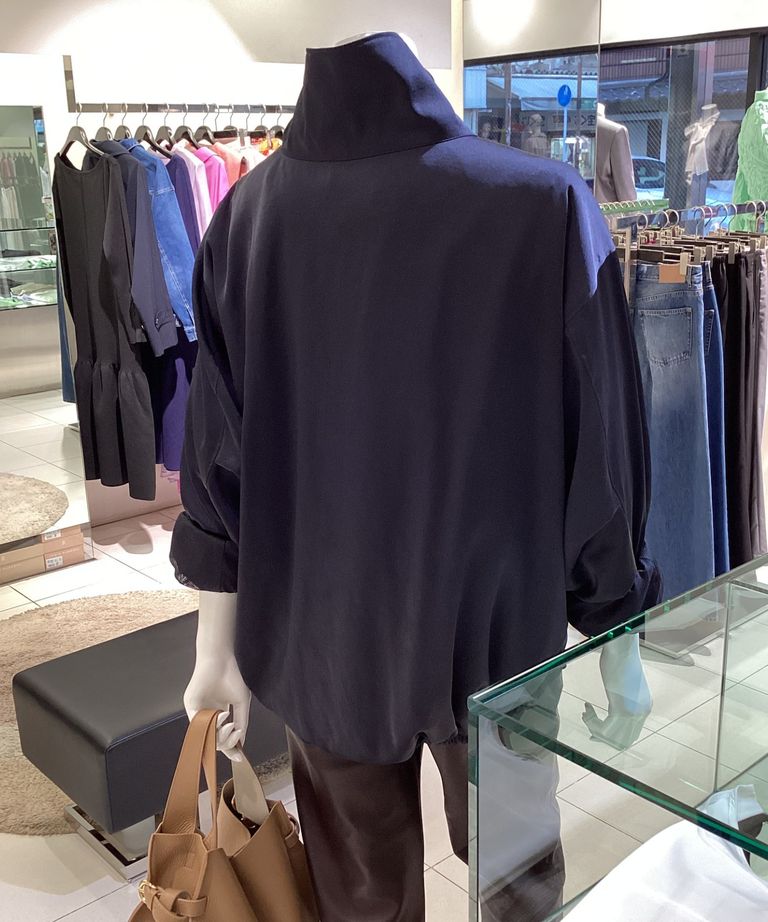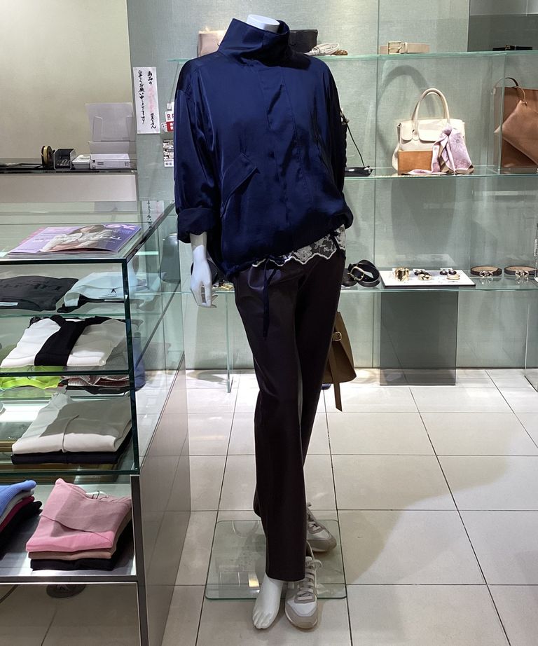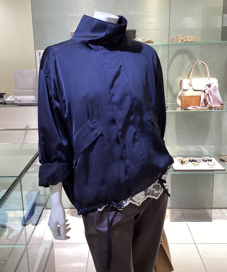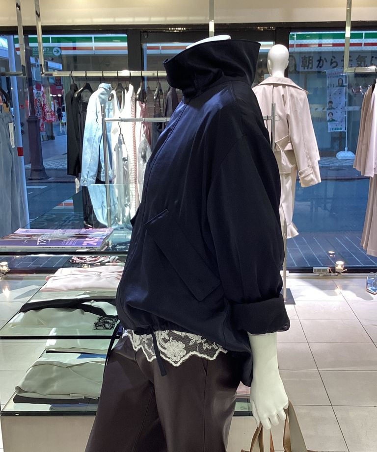サテンドロストブルゾン(ダークネイビー) ポリエステル / スタンドカラー / 裾はドロスト / MWFJ261081