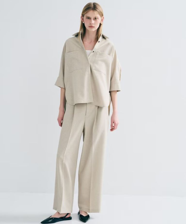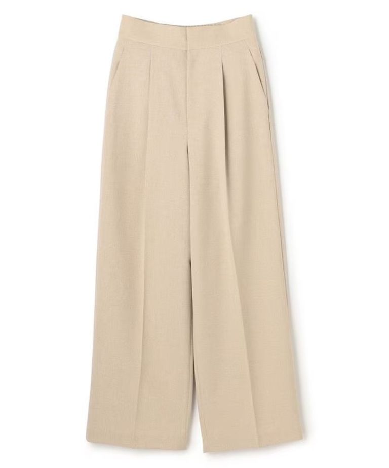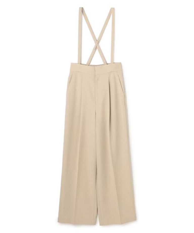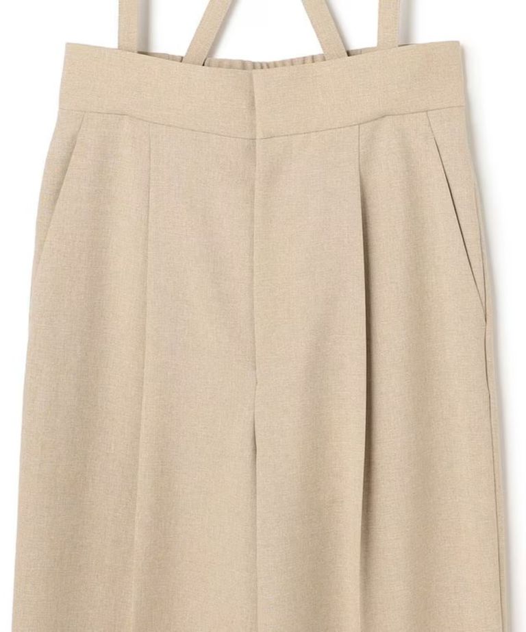 ウォッシャブルドライサップワイドパンツ(シャンブレーベージュ) ポリエステル / サスペンダー付き / ハイウエスト / センタープレス / バックスタイルゴム / PRUVLM0401