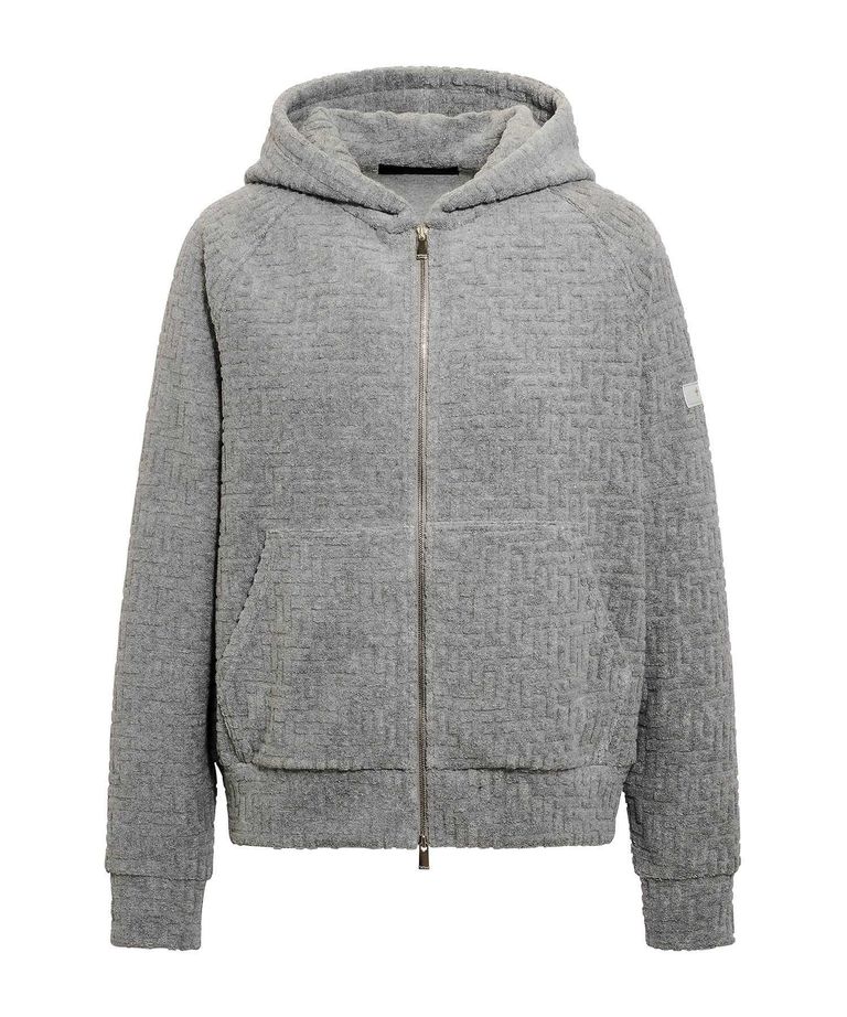 BIANCA ビアンカ パーカー (グレー) 綿 / モノグラム柄ジャカード/ パイル素材 /メタルファスナー / LCKZ0471063588