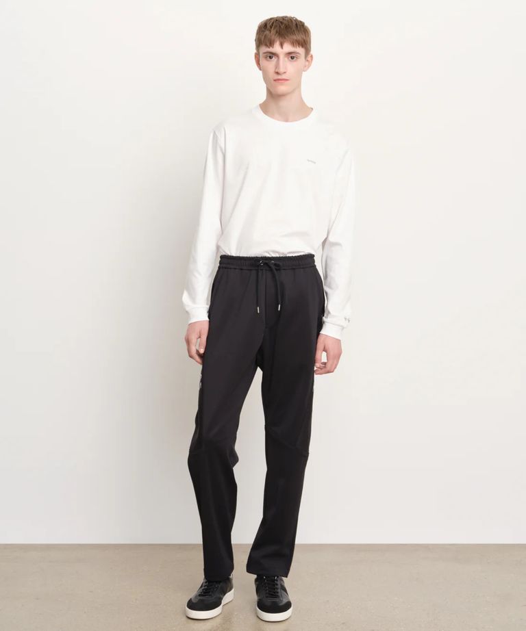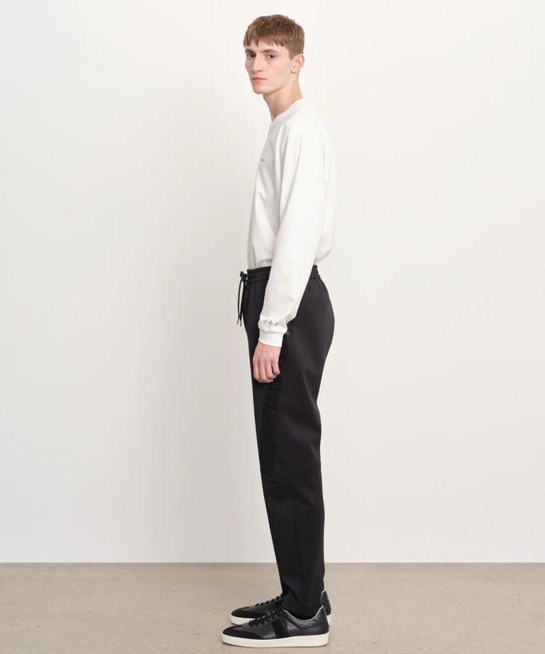 MENTORE メントーレ パンツ(ブラック) ポリエステル /テーパードシルエット / ウエストドローコード/ ロゴプリント / MCKZ0350103588