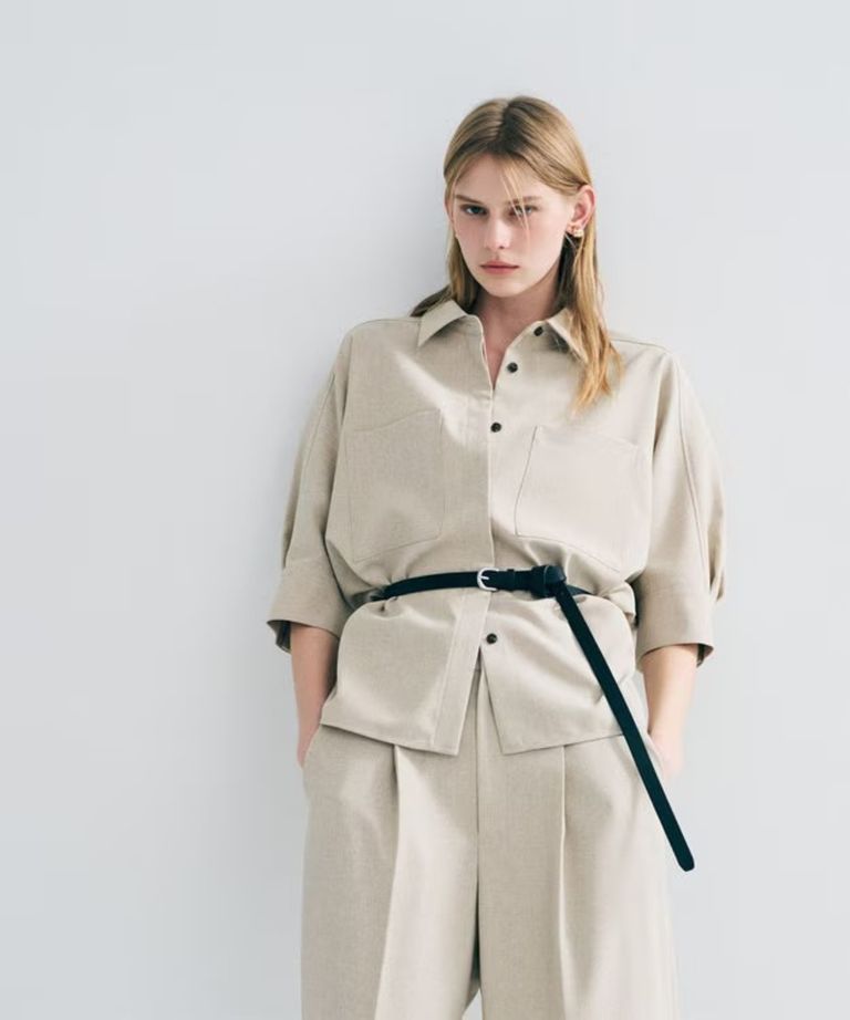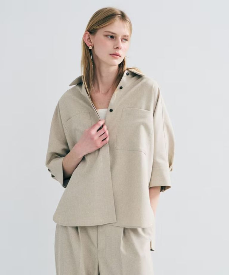 ウォッシャブルドライサップドルマンシャツ(シャンブレーベージュ) ポリエステル / ヒップラインが隠れる丈感 / BLUVLM0400
