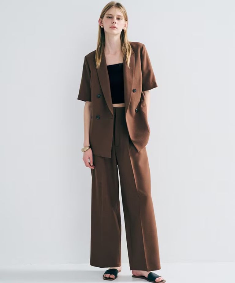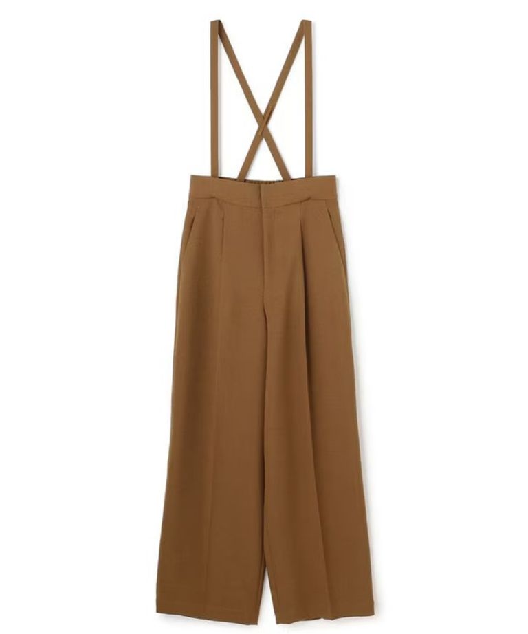 ウォッシャブルドライサップワイドパンツ(キャメル) ポリエステル / サスペンダー付き / ハイウエスト / センタープレス / バックスタイルゴム / PRUVLM0401