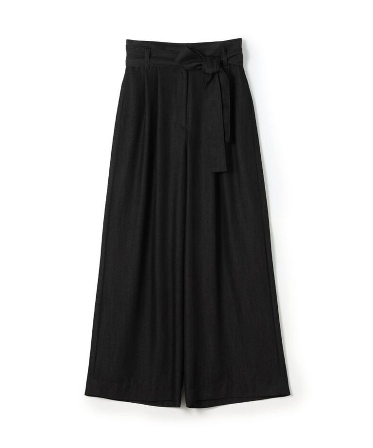 ラスターデニム ダブルタックワイドパンツ (ブラック)レーヨン / 付属ベルト付き /伸縮性無し / 裏無し / 手洗可 / 11-04-62-04235