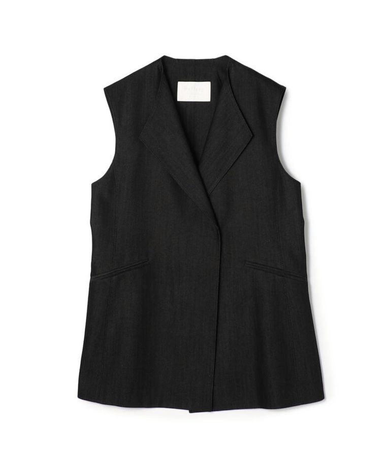 ラスターデニム ミドルジレ (ブラック) レーヨン / 伸縮性無し / 裏地無し/ 共布ベルト / 11-07-62-07235