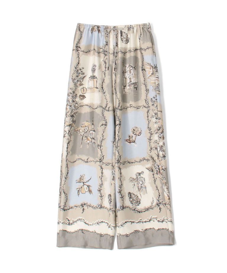 ローマプリント ドローストリングパンツ( ライトベージュ系) ポリエステル / ウエストゴム / ストレートシルエット / 裏地無し / 手洗可 / 13-04-62-04252