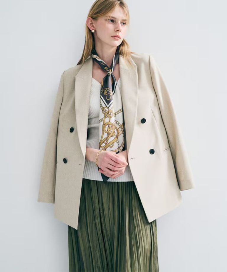 ウォッシャブルドライサップジャケット(シャンブレーベージュ) ポリエステル / ボクシーシルエット / JKUVLM0400