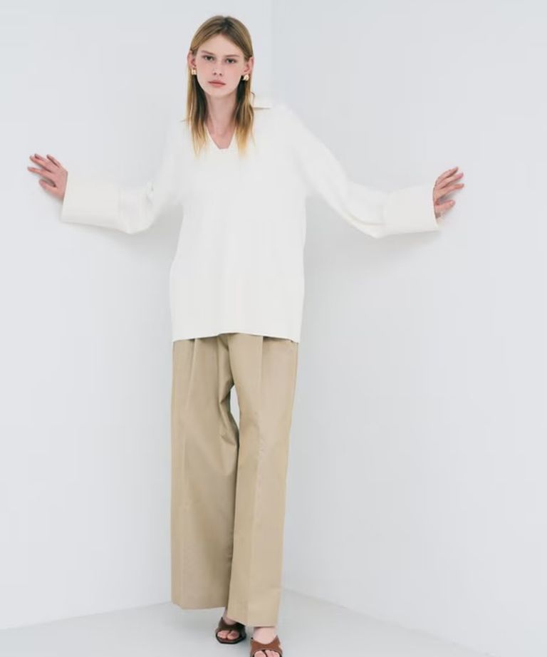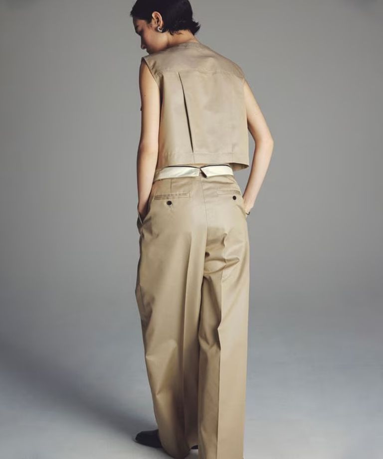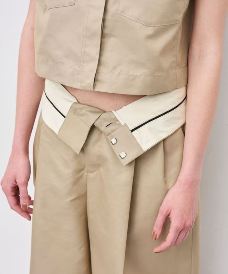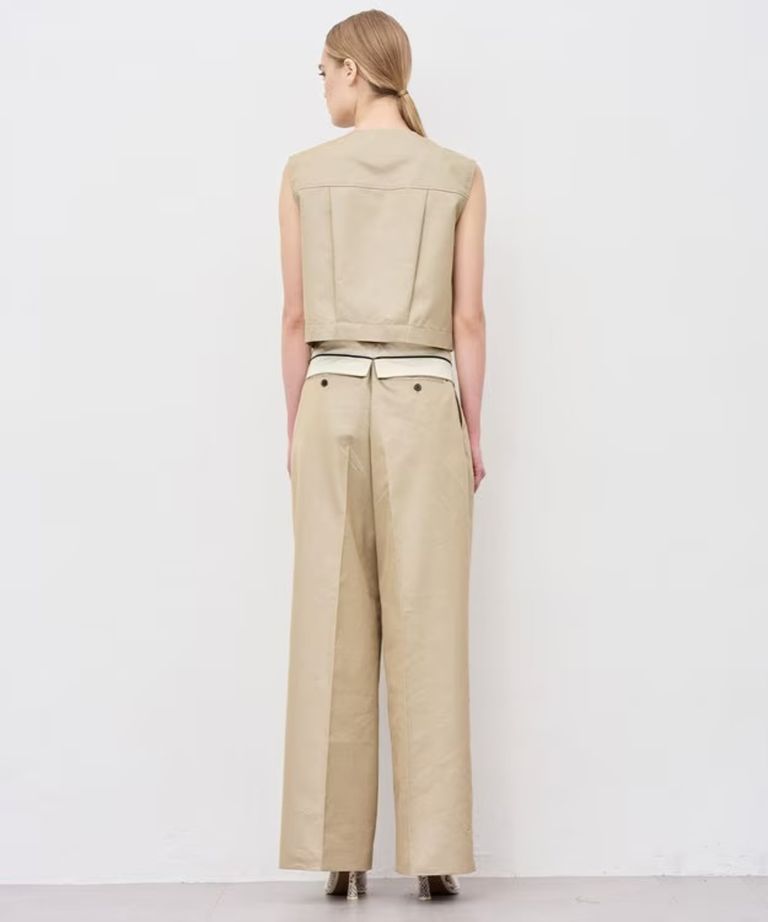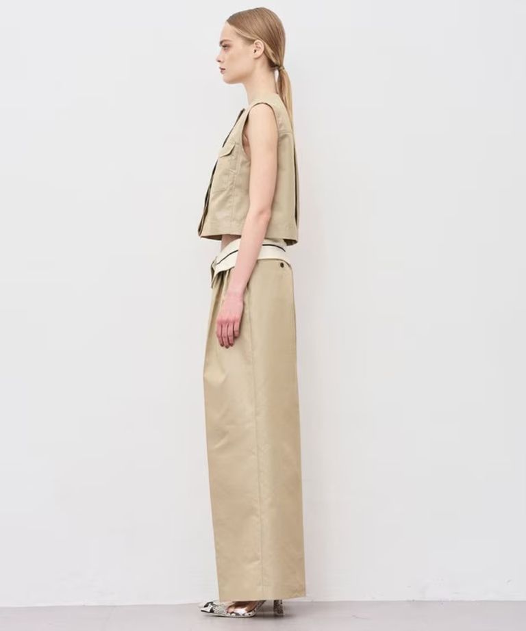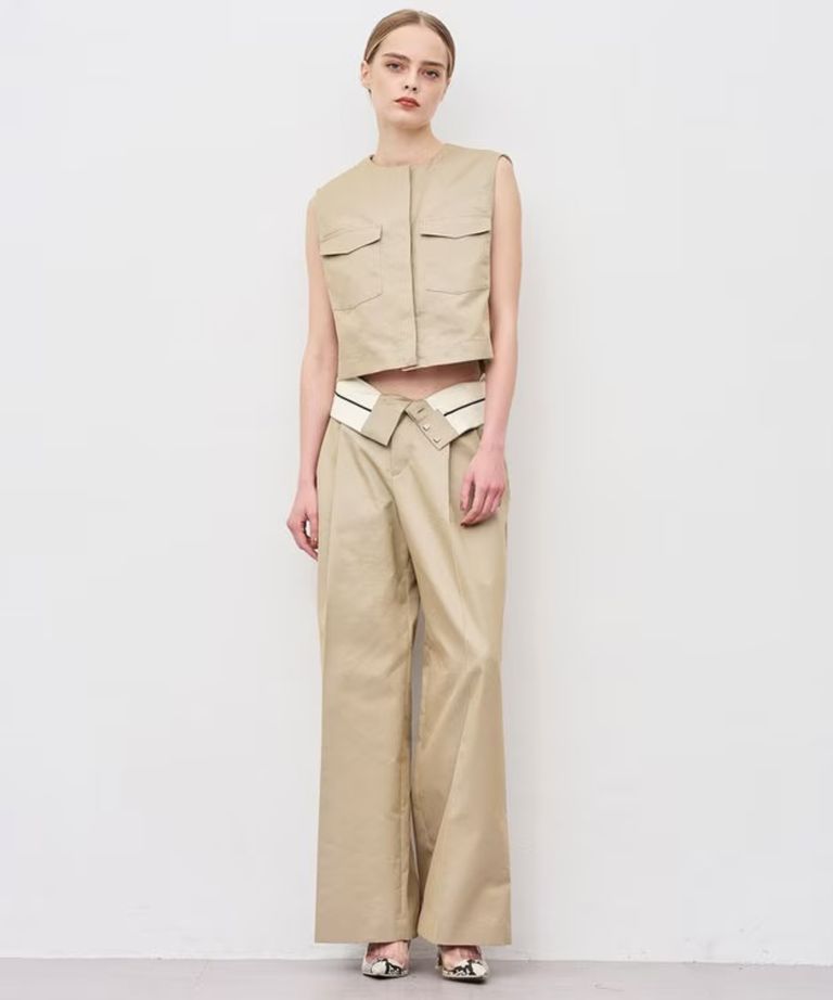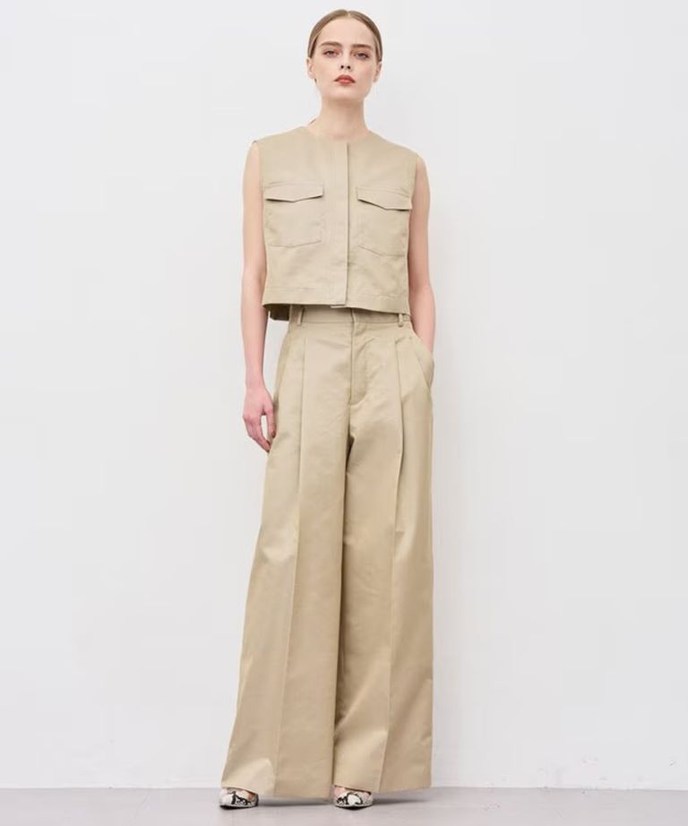 チノギャバジンワイドトラウザー(ベージュ) 綿 / ウォッシャブル / 手洗い可 / 撥水加工 / ハイウエスト/ PRUVLS3810