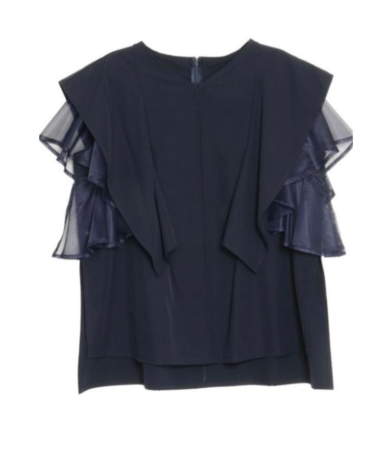 メッシュレイヤードスリーブブラウス(ネイビー) ナイロン / ウォッシャブル / 手洗い可 / 5126304213