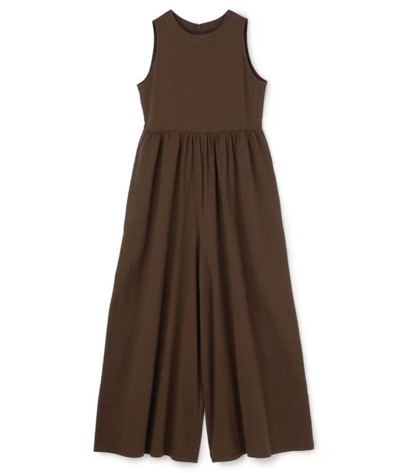 天竺編みジャージー素材を使用したオールインワンです。スッキリとした身頃感と、パンツのたっぷりとした分量感が気映えする1枚です。ジャージー素材の為コンパクトな身頃感でも着心地良く、また軽い素材なので分量のあるパンツでも軽やかに着用いただけます。1枚で完成する便利アイテムとして仕上げました。