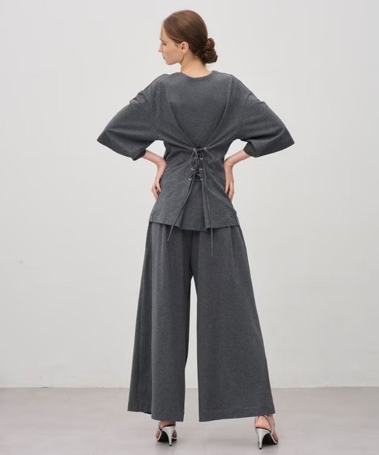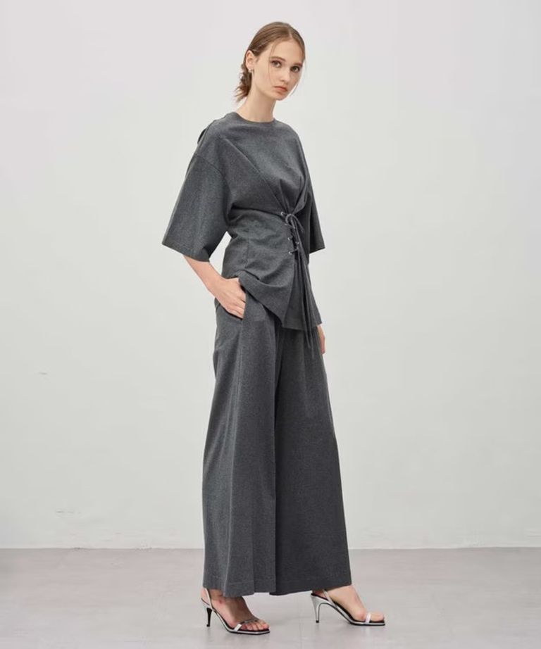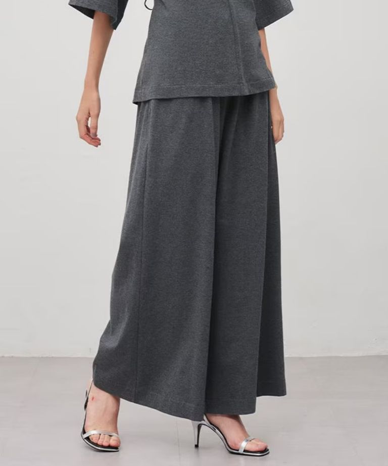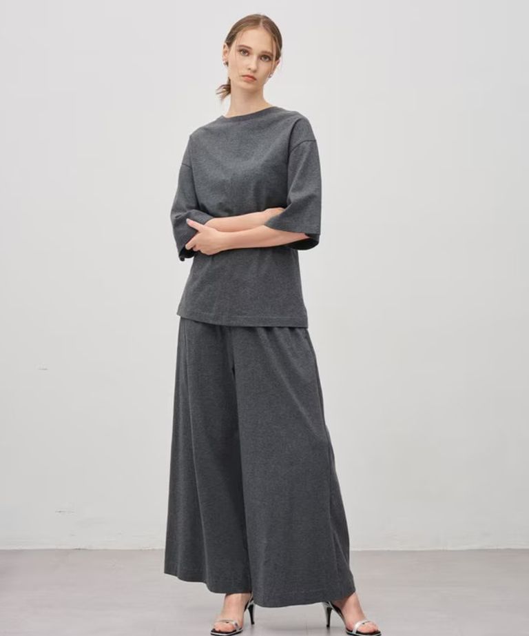 プレーンジャージーギャザーパンツ(チャコール) 綿 / ウォッシャブル / ウエストゴム / PRUVGW0314
