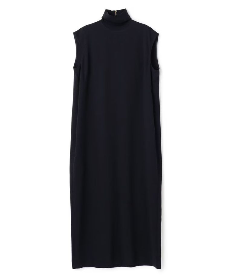 FLEUR / 異素材ネック ロングワンピース (Navy) トリアセテート / ノースリーブ /ゴールドファスナー /手洗可/ OPCWLM0404