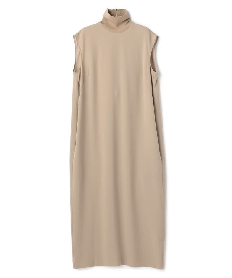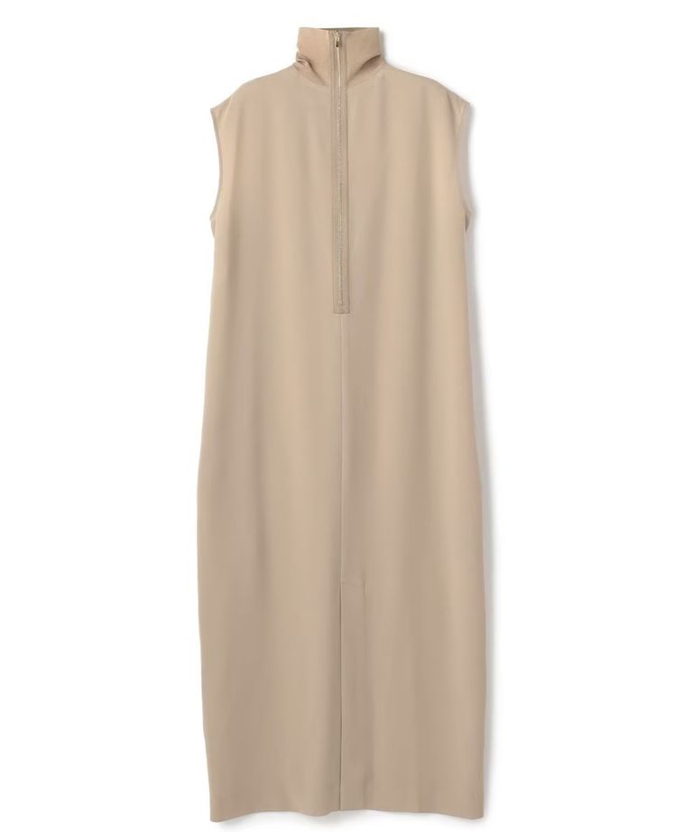 FLEUR / 異素材ネック ロングワンピース (Beige) トリアセテート / ノースリーブ /ゴールドファスナー /手洗可/ OPCWLM0404