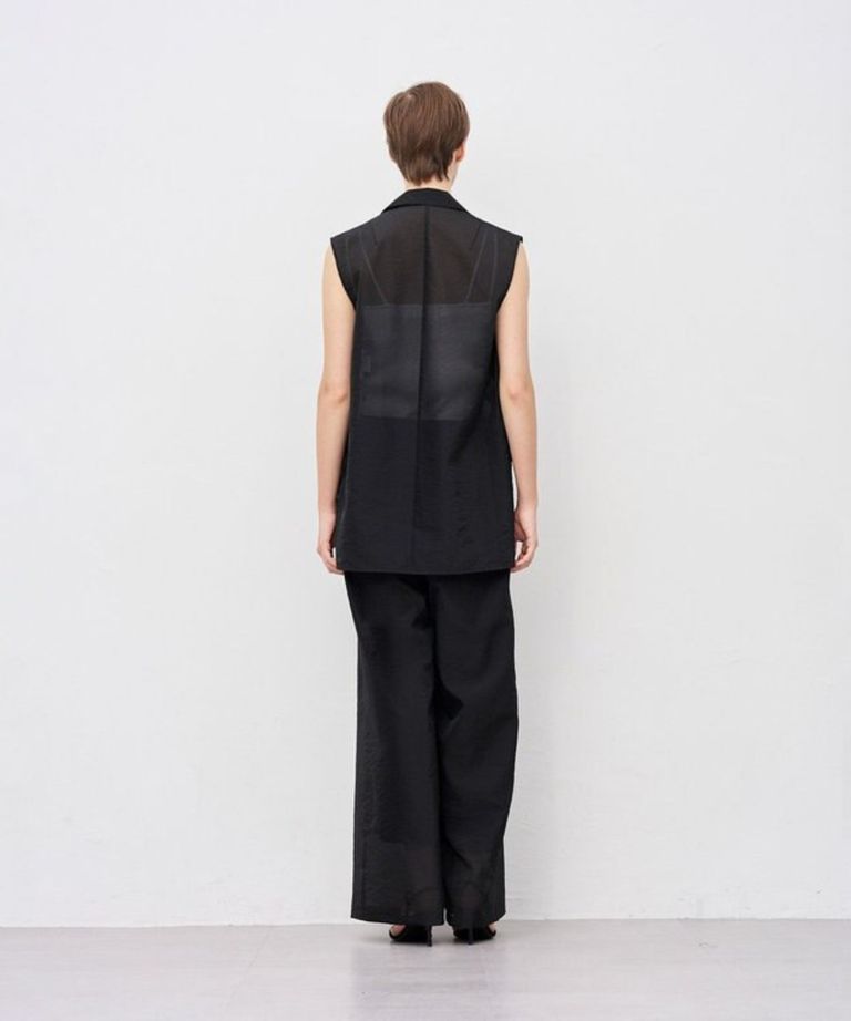 シアーオーガンジーテーラードジレ(ブラック) ポリエステル / シングルジレ / VRUVGA0811