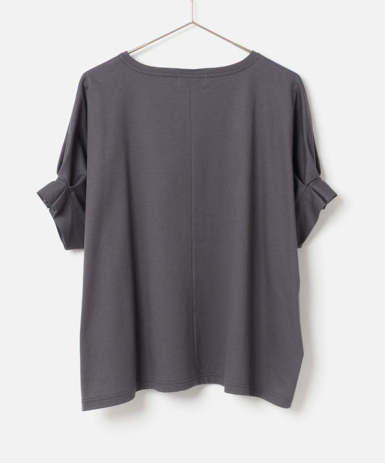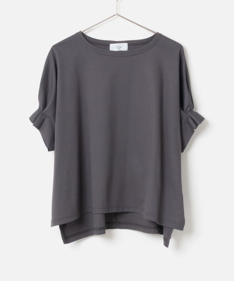 Tuck Sleeve Cut and Sew (チャコールグレー) 綿 / 袖口タック / 裾スリット / 手洗可 / MK261-13255