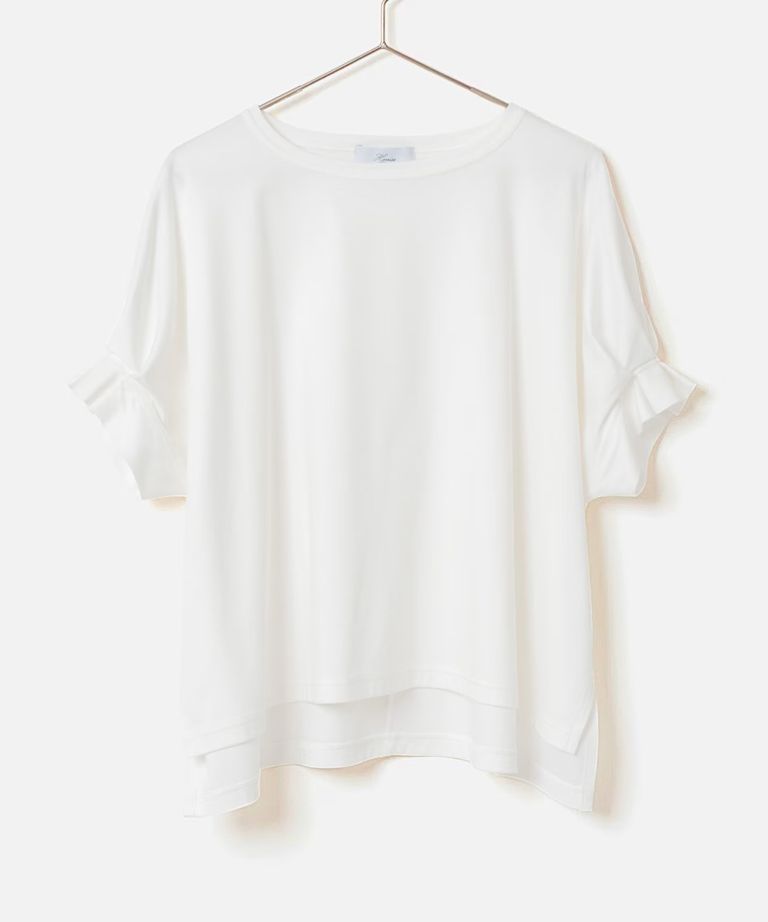 Tuck Sleeve Cut and Sew (オフホワイト) 綿 / 袖口タック / 裾スリット / 手洗可 / MK261-13255