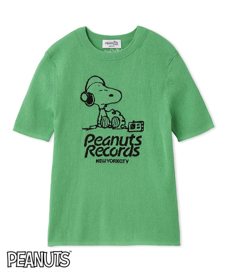 【PEANUTS RECORDS】スヌーピージャガードリブニット (GRN) 綿 / 伸縮性有り / 軽量 / 手洗可 / 09WNT261026