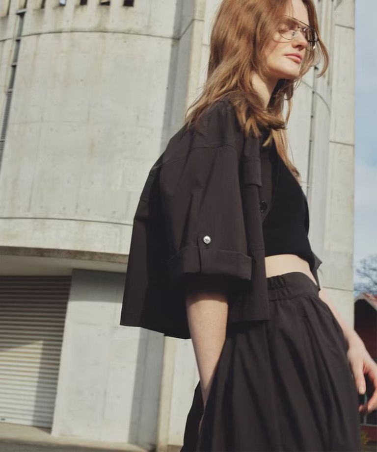 クールタッチカラータイプライターシャツジャケット(ダークブラウン) ポリエステル / ウォッシャブル / ショート丈 / JKUVLS0402