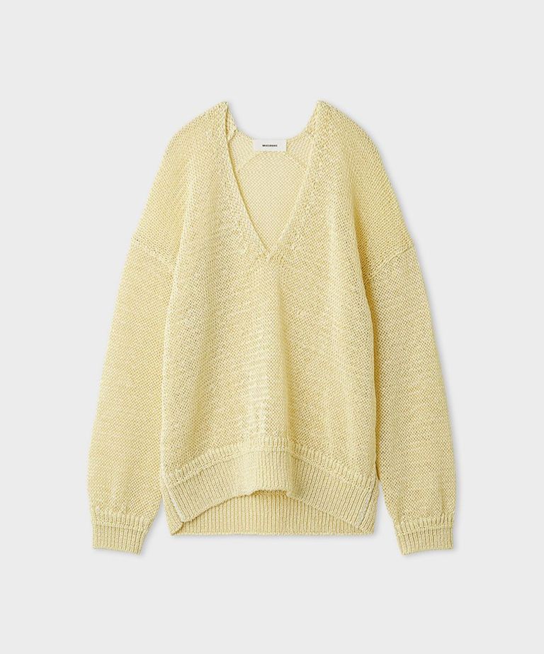 リネンタッチイージーVネックニット(イエロー) ポリエステル / ウォッシャブル / 手洗い可 / MWNT262038