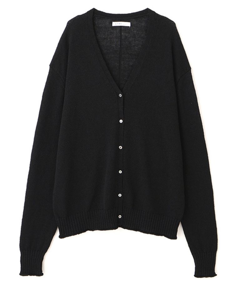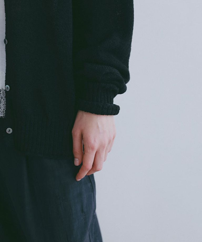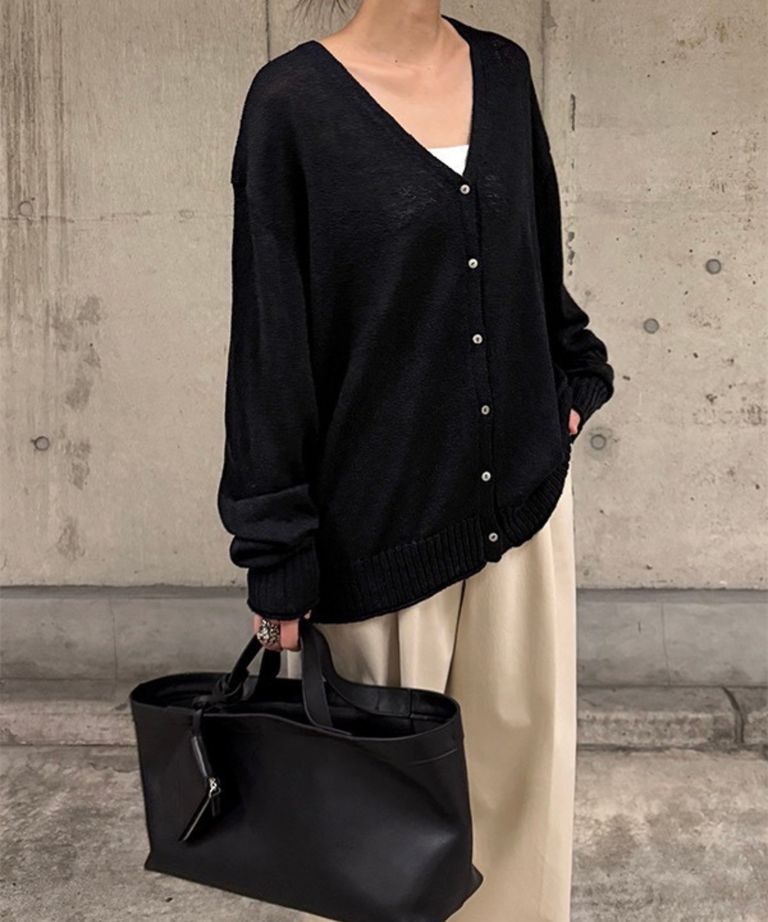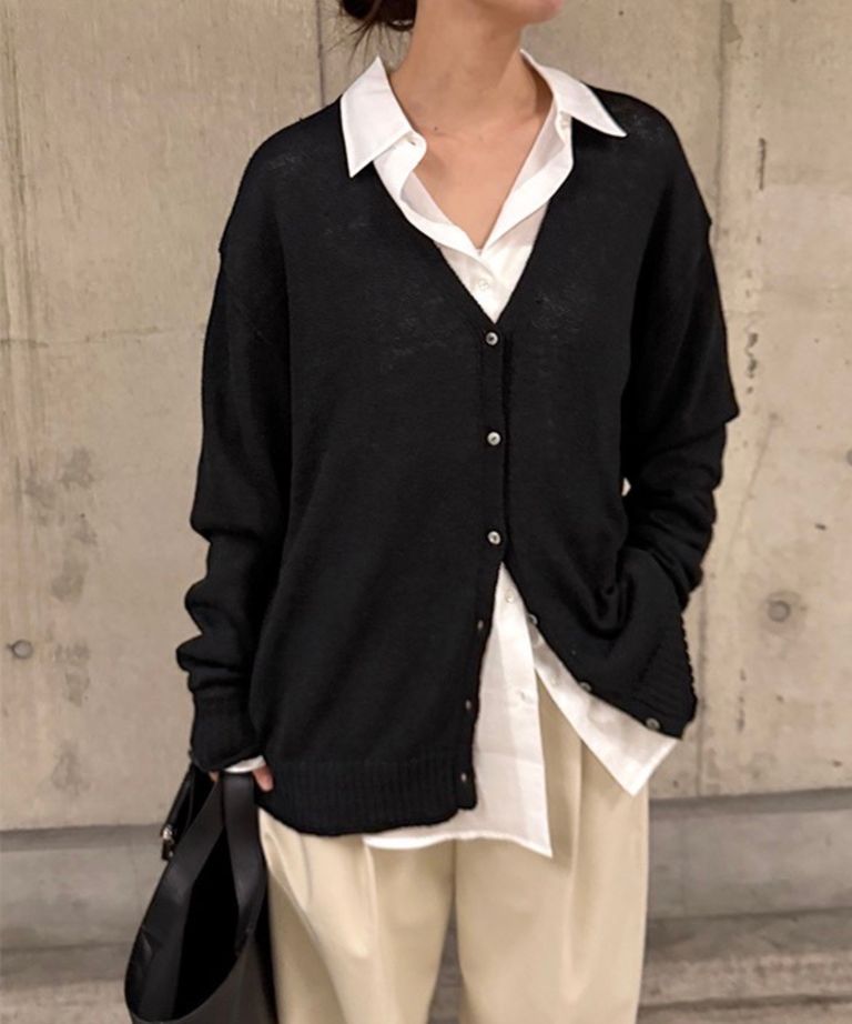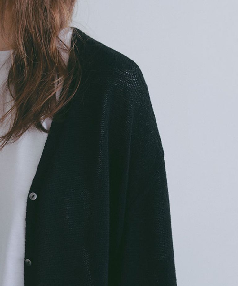 リリヤーンリネンVネックカーディガン(ブラック) 麻 / 深めVネック/ 小さめボタン / 1226204094