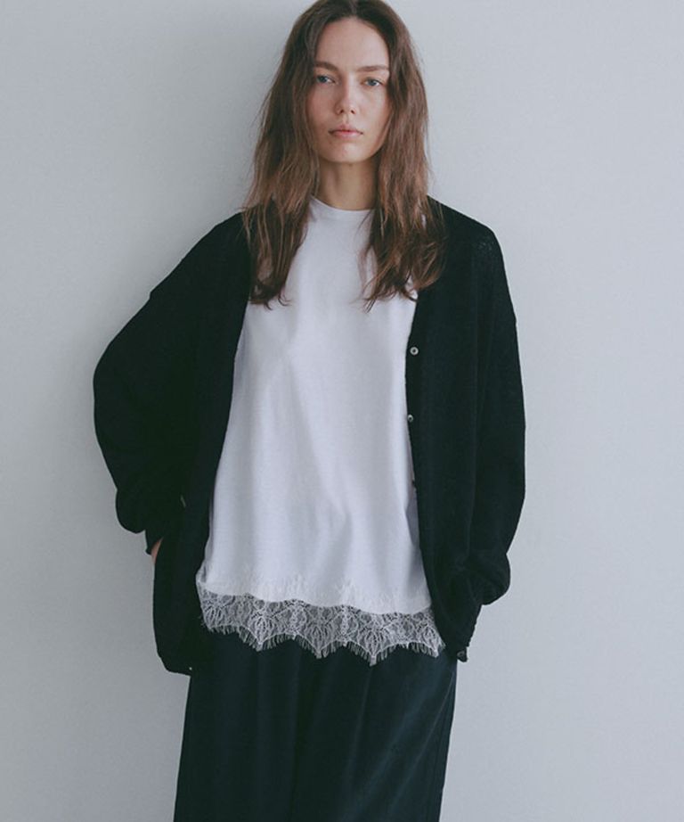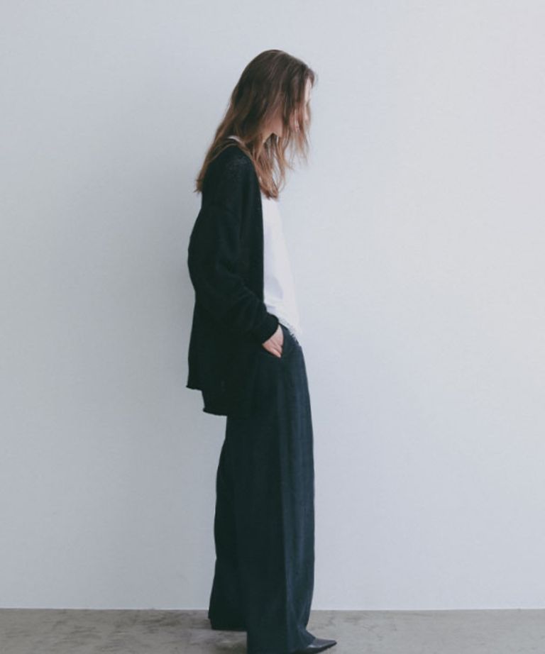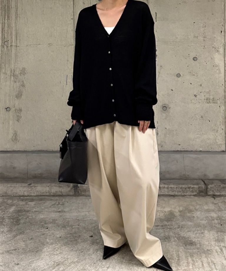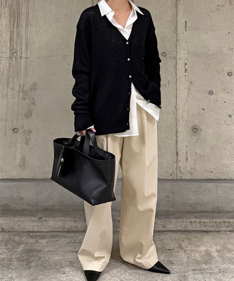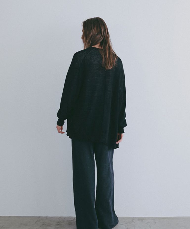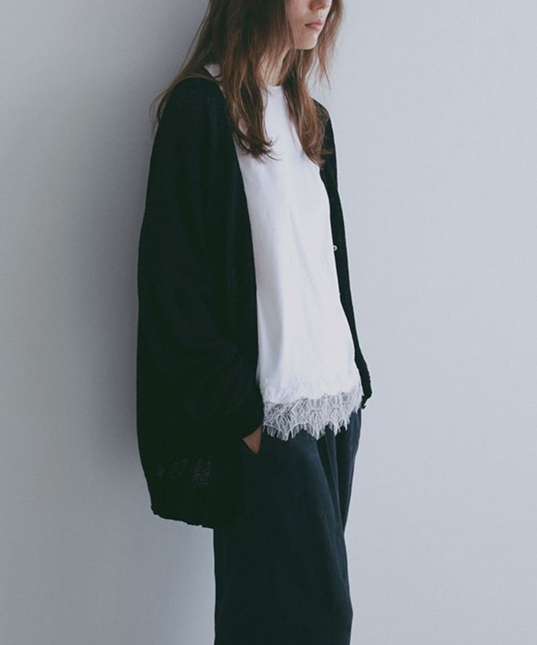 リリヤーンリネンVネックカーディガン(ブラック) 麻 / 深めVネック/ 小さめボタン / 1226204094