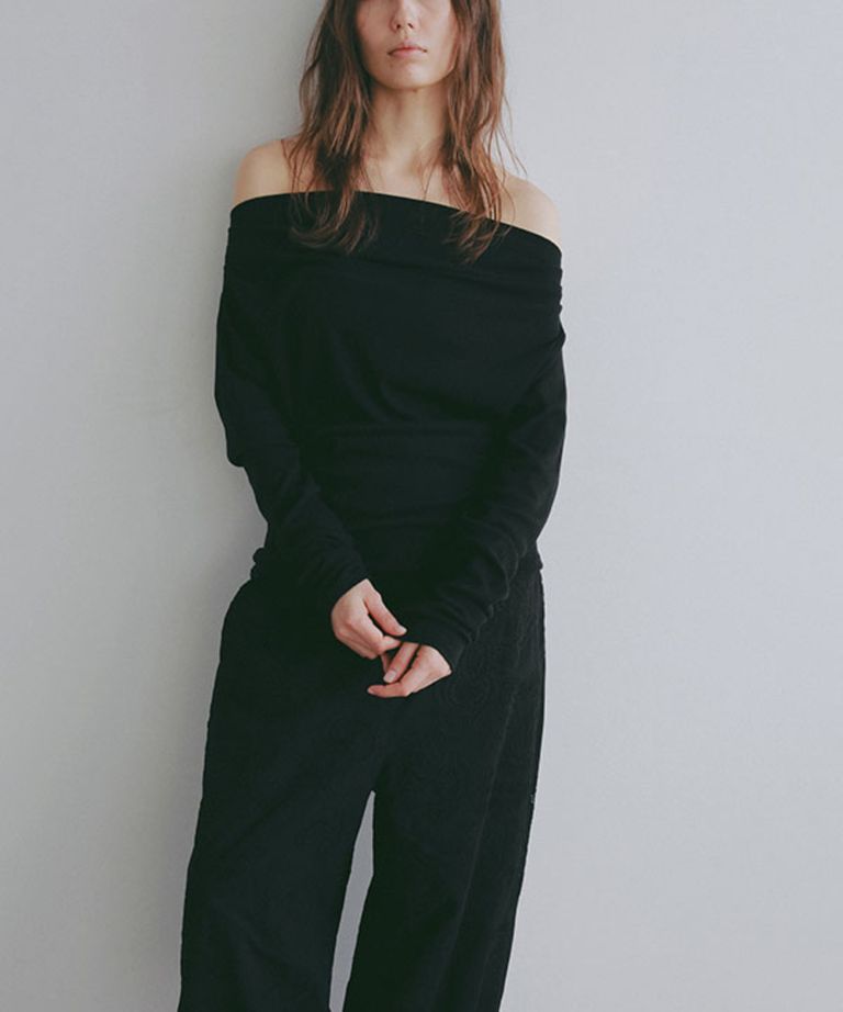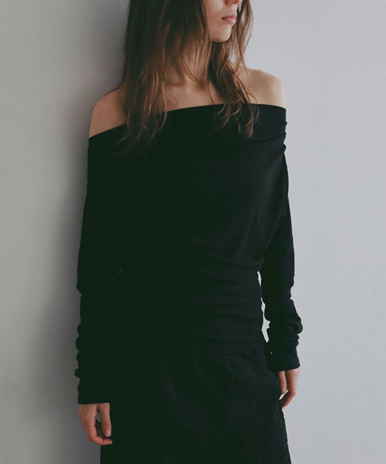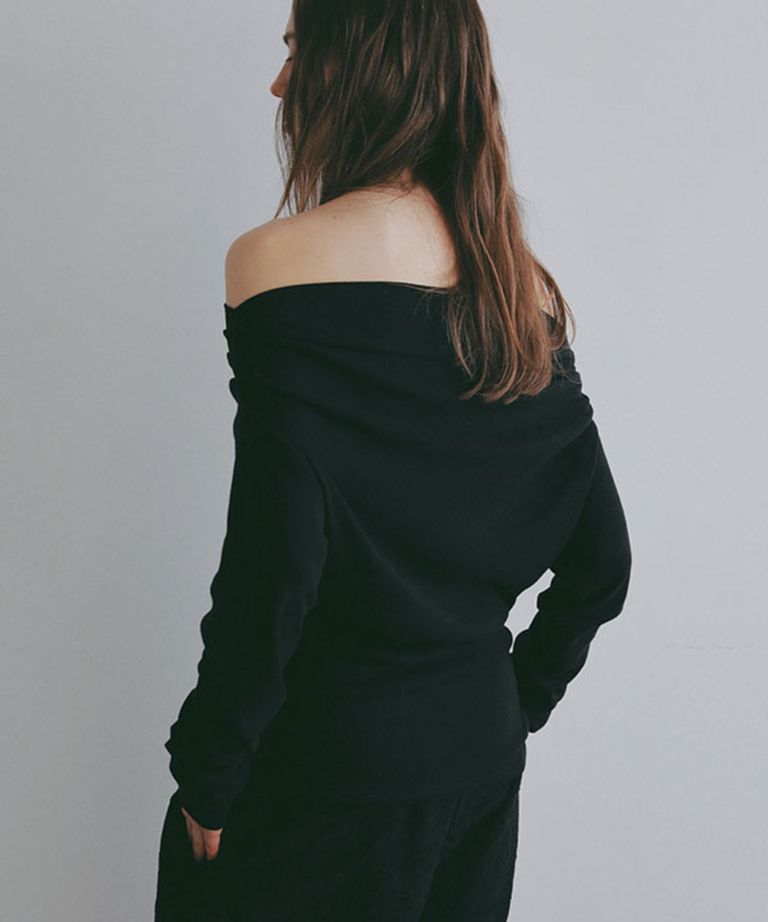 ワンショルダードレーププルオーバー(ブラック) 綿 / ウォッシャブル / 手洗い可 / 1226212079