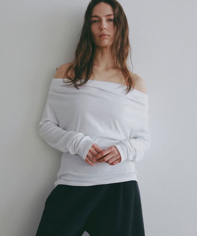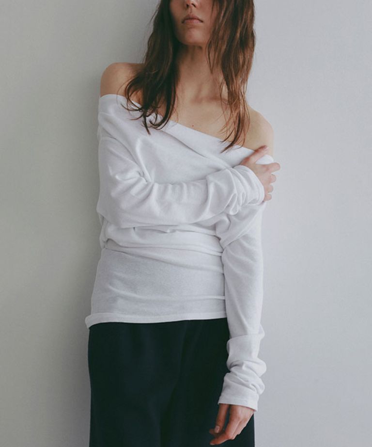 ワンショルダードレーププルオーバー(ホワイト) 綿 / ウォッシャブル / 手洗い可 / 1226212079
