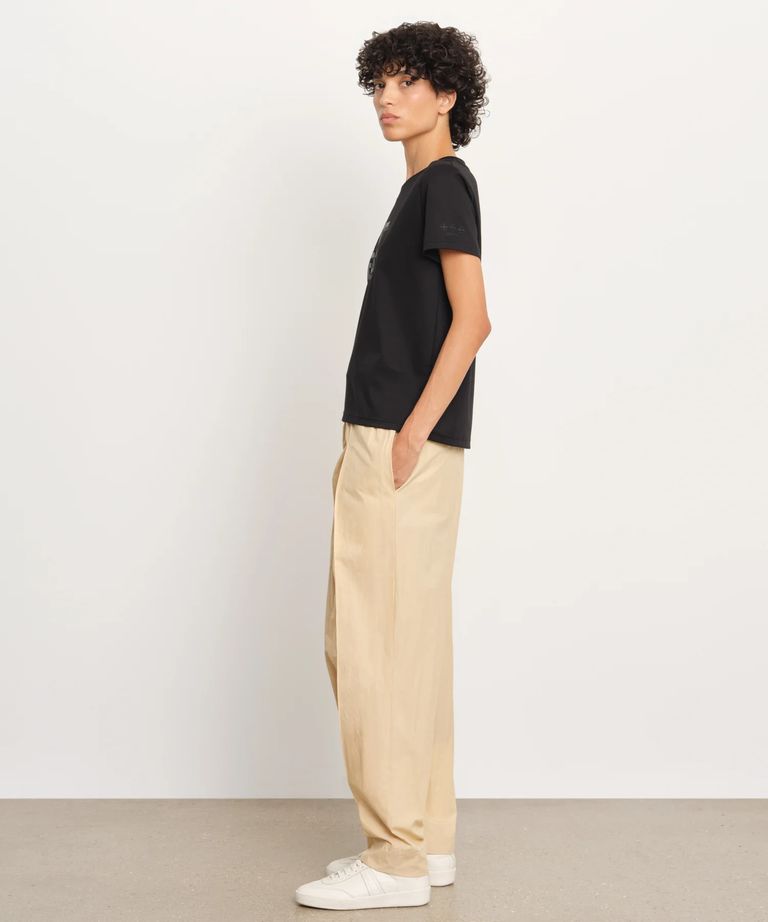 CORNELIA コルネーリア Tシャツ (ブラック) 綿 / フロント刺繍・プリント /左袖ブランドアイコン刺繍 / LCKZ0372083588