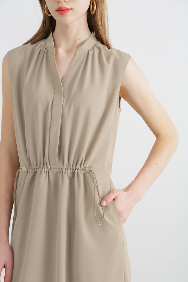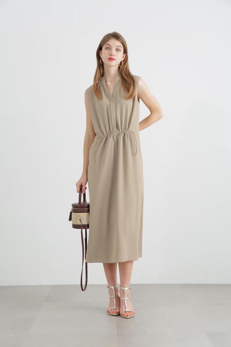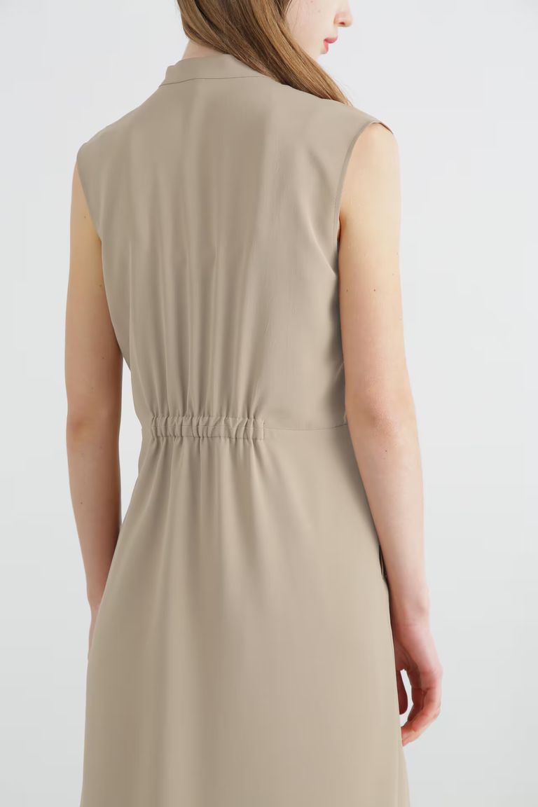 2WAYストレッチシャツカラーワンピース (ベージュ) / ポリエステル 100% / ウォッシャブル / インナーキャミ付き / 0314240885